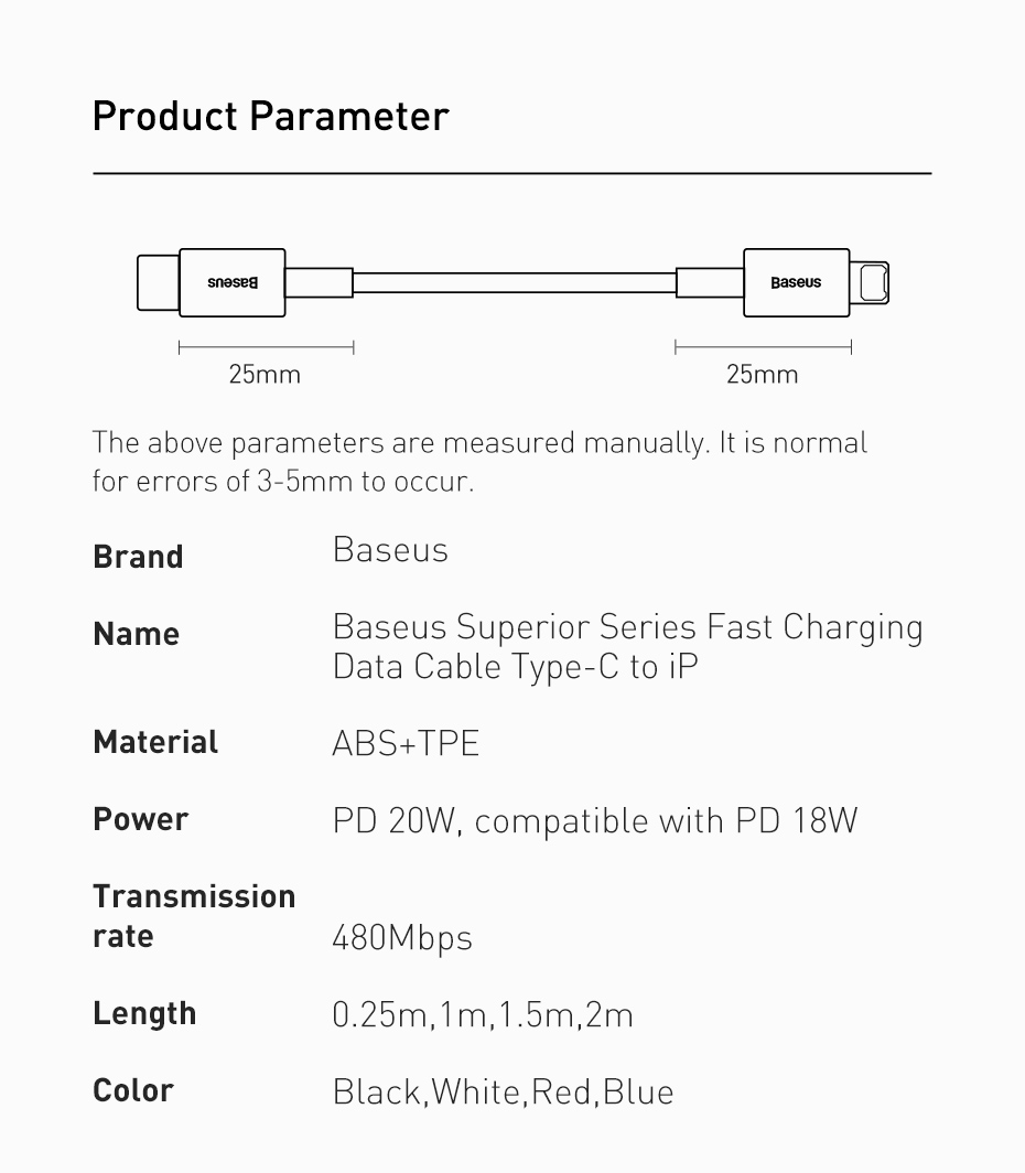 | Tên | Cáp Sạc Nhanh C to iP DZ-KA Baseus Superior Series Fast Charging Data Cable Type-C to iP PD 20W |