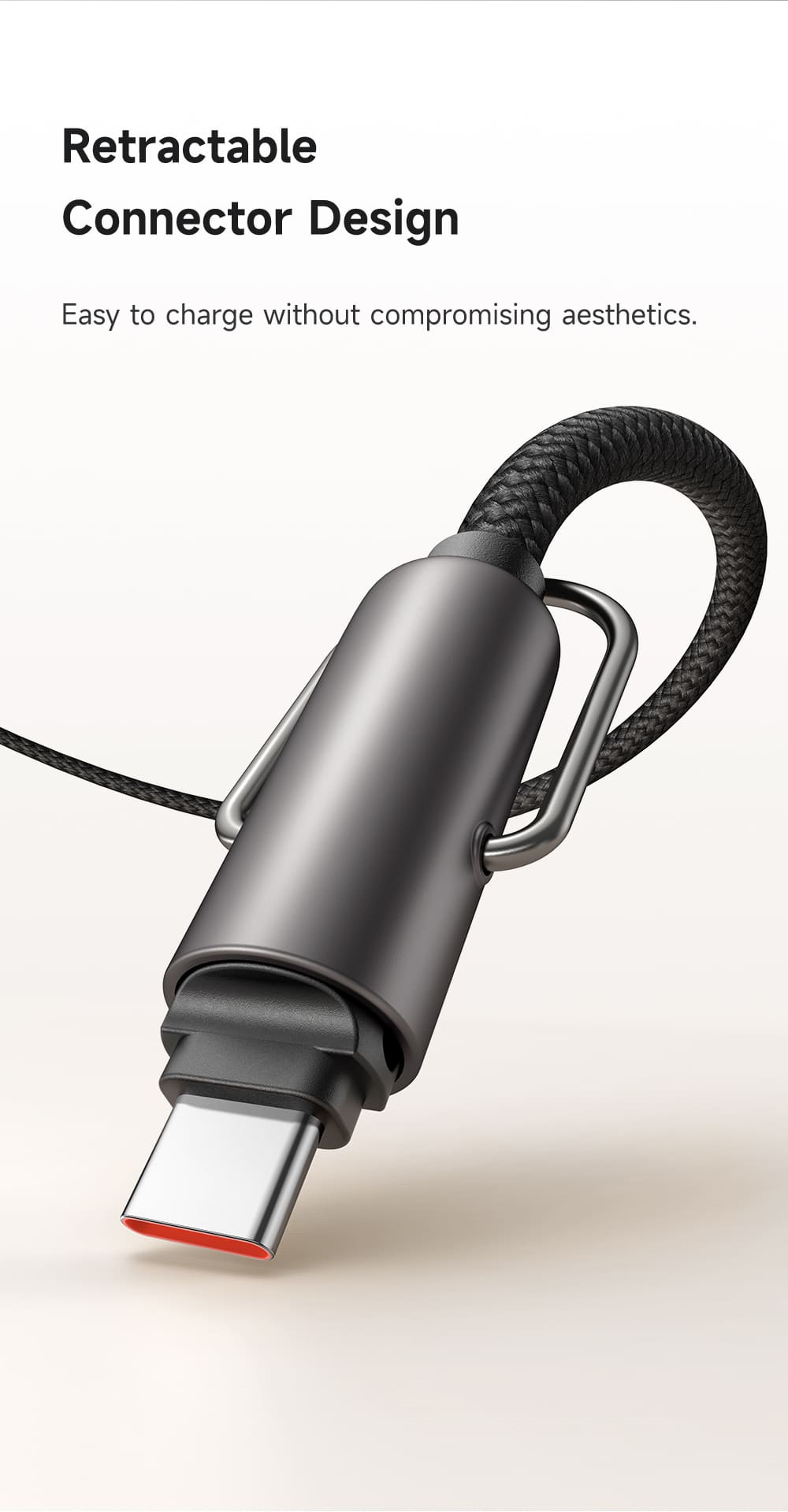 ○ Thiết kế đặc biệt: Đầu cắm Type-C có thể rút gọn vào vỏ bảo vệ.
