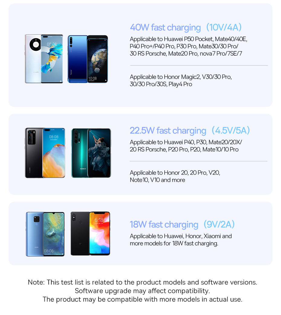 ○ Chuyên dụng cho sạc nhanh Huawei/Honor: Tối ưu hóa để đạt công suất sạc siêu nhanh 100W/66W/40W...
