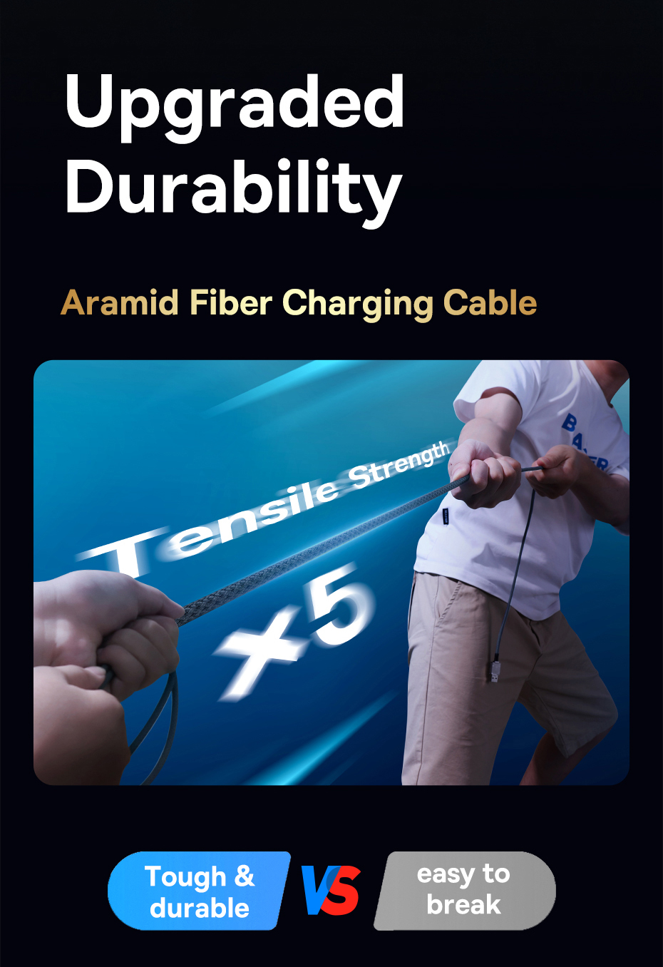 Sản phẩm này cũng được xây dựng để bền vững và chắc chắn. Với thiết kế Unbreakable Series, cáp được gia cố bằng sợi sợi nylon chất lượng cao và lõi dẫn bằng đồng tinh khiết, giúp tăng độ bền và chống chập chờn, giúp nó chống lại các tác động và kéo giãn không mong muốn trong quá trình sử dụng hàng ngày.