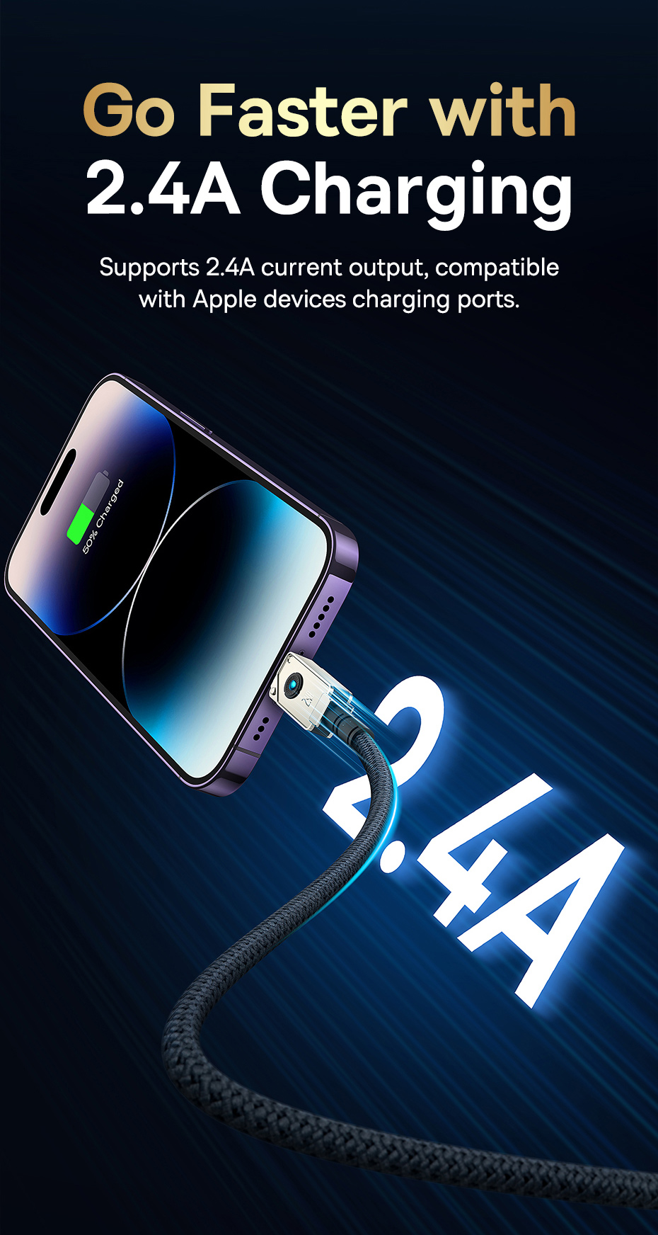 Với công nghệ sạc nhanh, cáp Sạc Nhanh USB to iP Baseus Unbreakable Series cho phép bạn sạc nhanh và tiết kiệm thời gian. Nó hỗ trợ dòng điện đầu vào lên đến 2.4A, giúp cung cấp năng lượng nhanh chóng cho thiết bị di động của bạn.