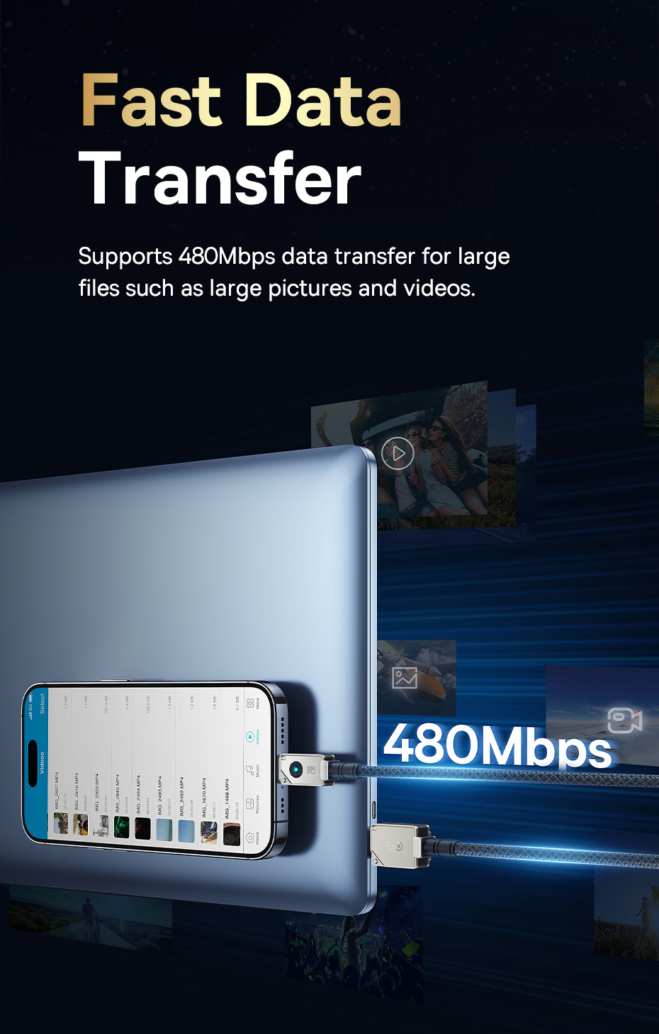 Ngoài chức năng sạc, cáp cũng hỗ trợ truyền dữ liệu. Bạn có thể sử dụng cáp để truyền dữ liệu giữa thiết bị di động và máy tính, sao lưu dữ liệu hoặc đồng bộ hóa tệp tin.