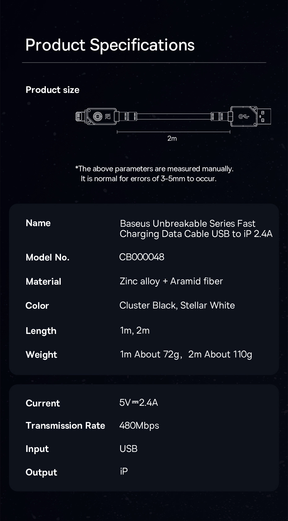 | Tên | Cáp Sạc Nhanh USB to iP Baseus Unbreakable Series Fast Charging Data Cable USB to iP 2.4A |