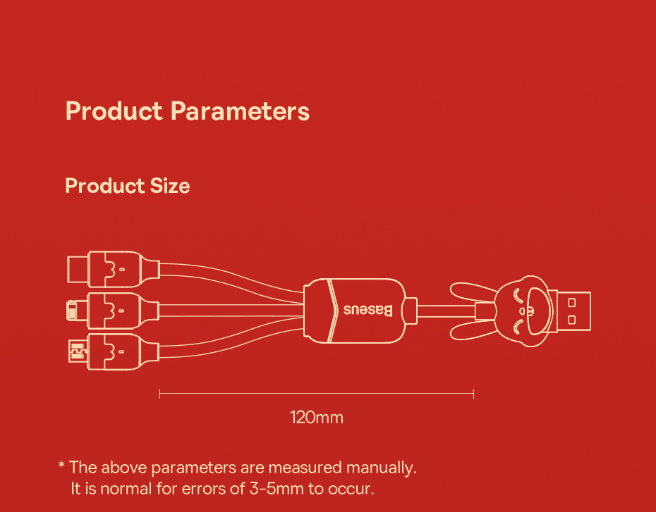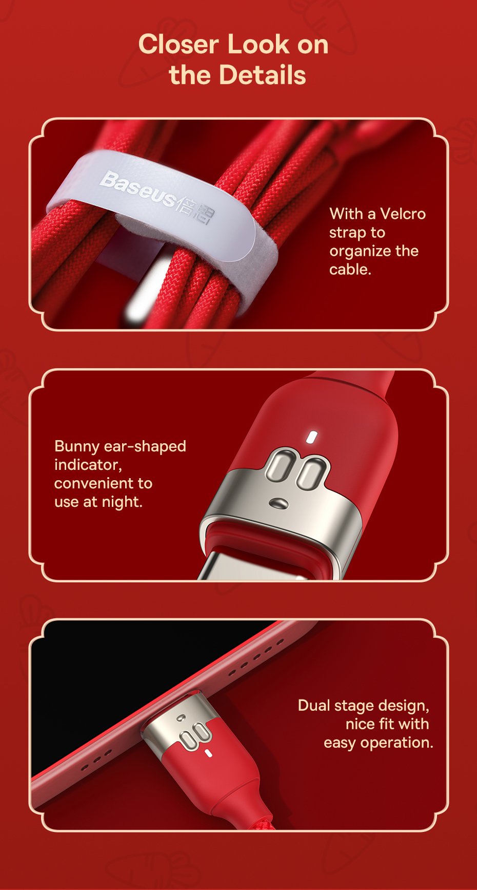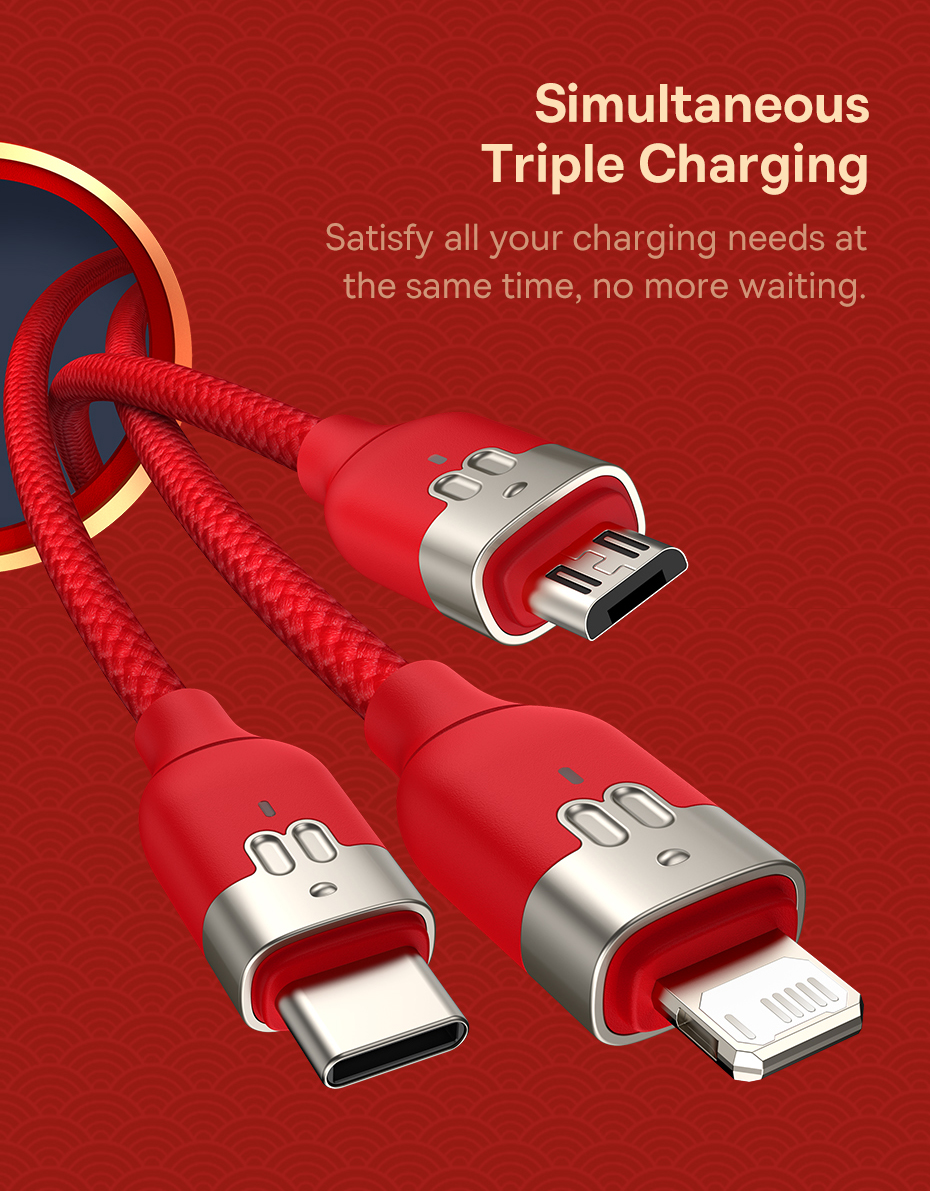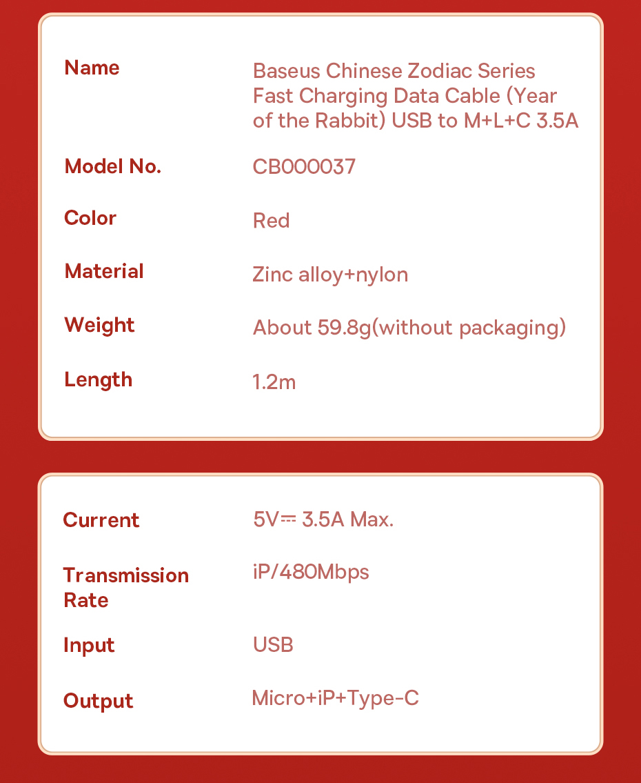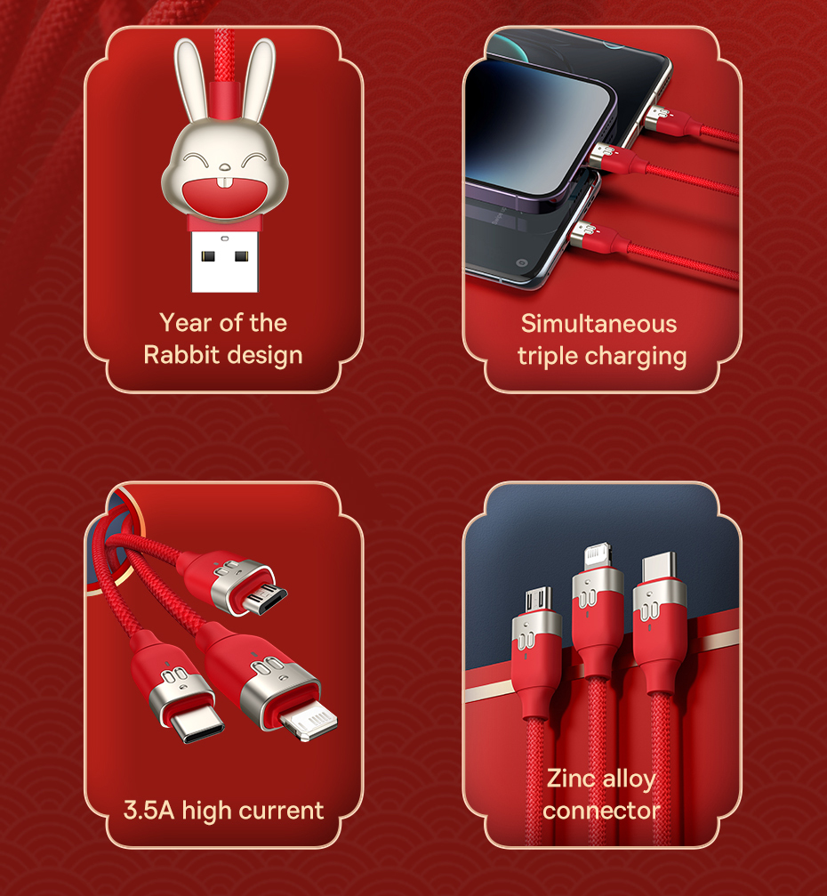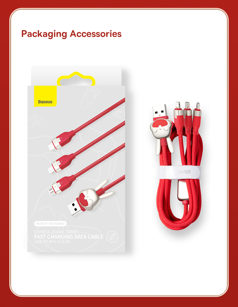 | Tên | Cáp Sạc Nhiều Đầu Hình Con Giáp Tết 2023 Baseus Chinese Zodiac Series Fast Charging Data Cable (Year of the Rabbit) USB to M+L+C 3.5A |