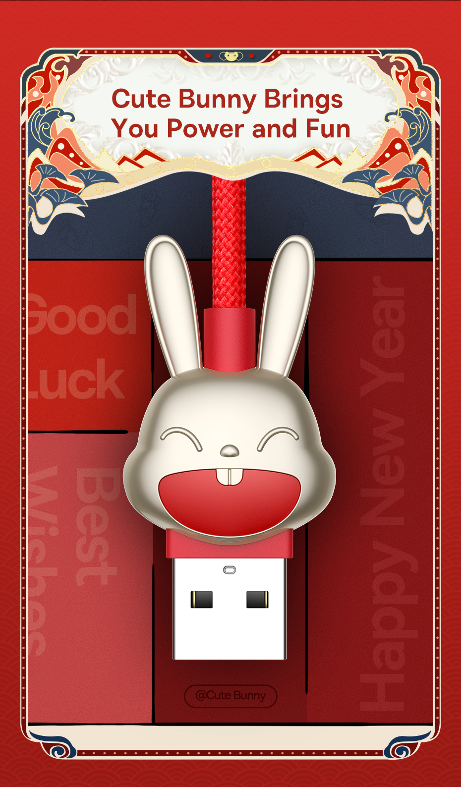 Thiết kế hình thỏ đặc biệt: Đầu cắm USB hợp kim kẽm hình thỏ và các đầu sạc in hình độc đáo.