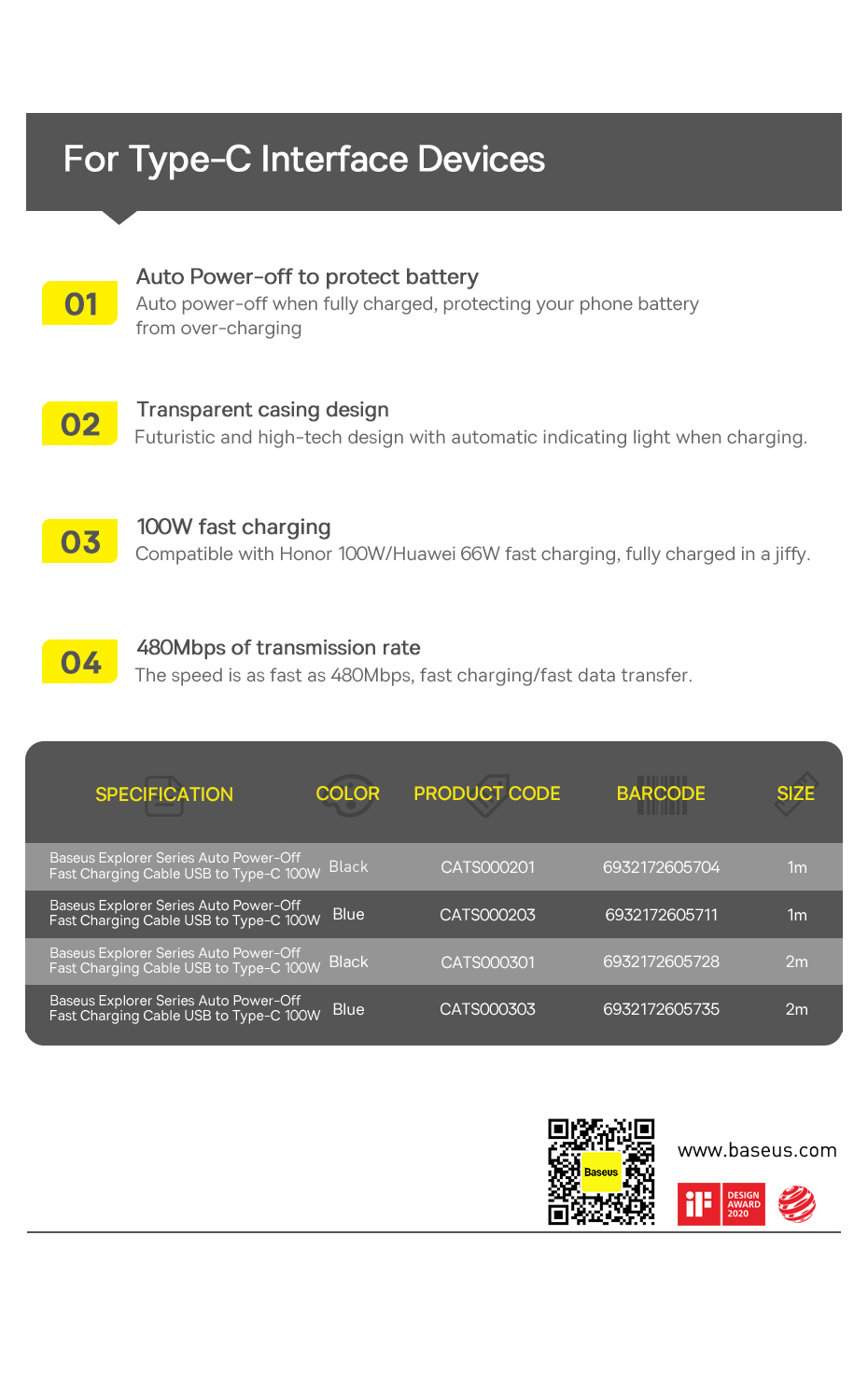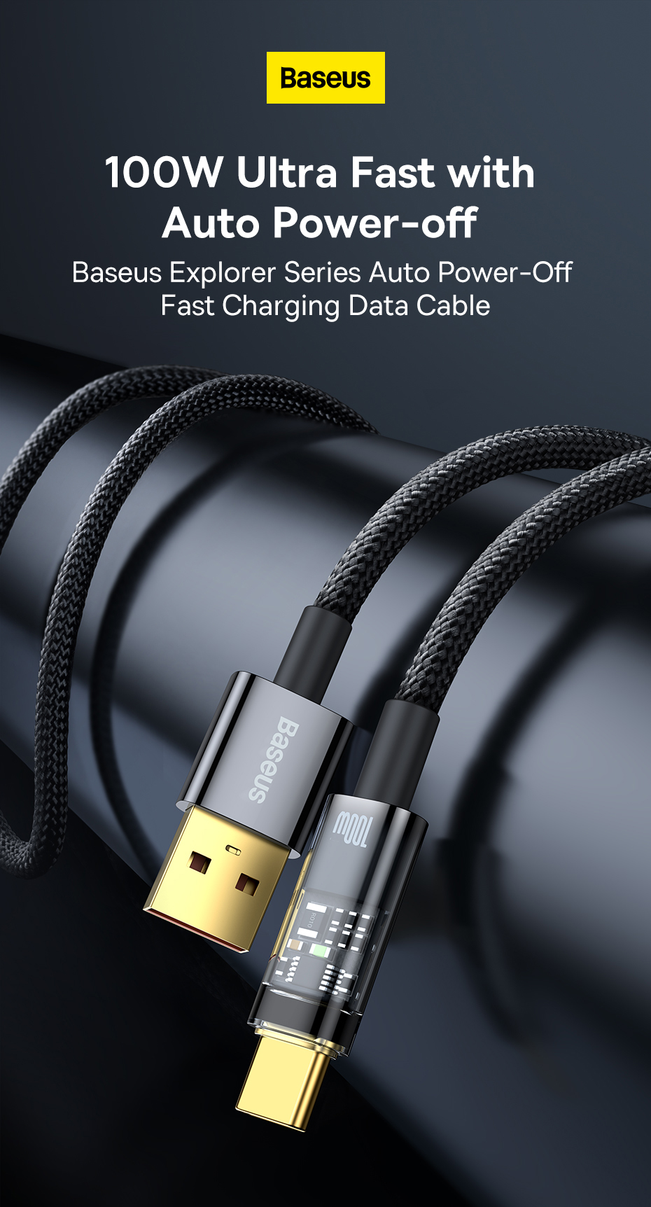 | Tên | Baseus Explorer Series Auto Power-Off Fast Charging Data Cable USB to Type-C 100W |