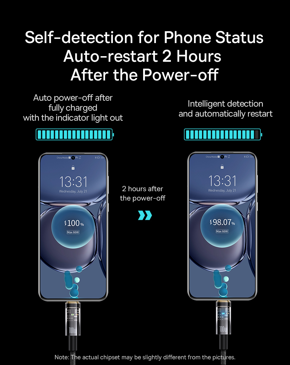 Self-Detection : Sau khoảng 2 giờ kể từ khi ngắt hoàn toàn dòng sạc , Cáp sạc Baseus Explorer Series sẽ tự động kết nối sạc lại.