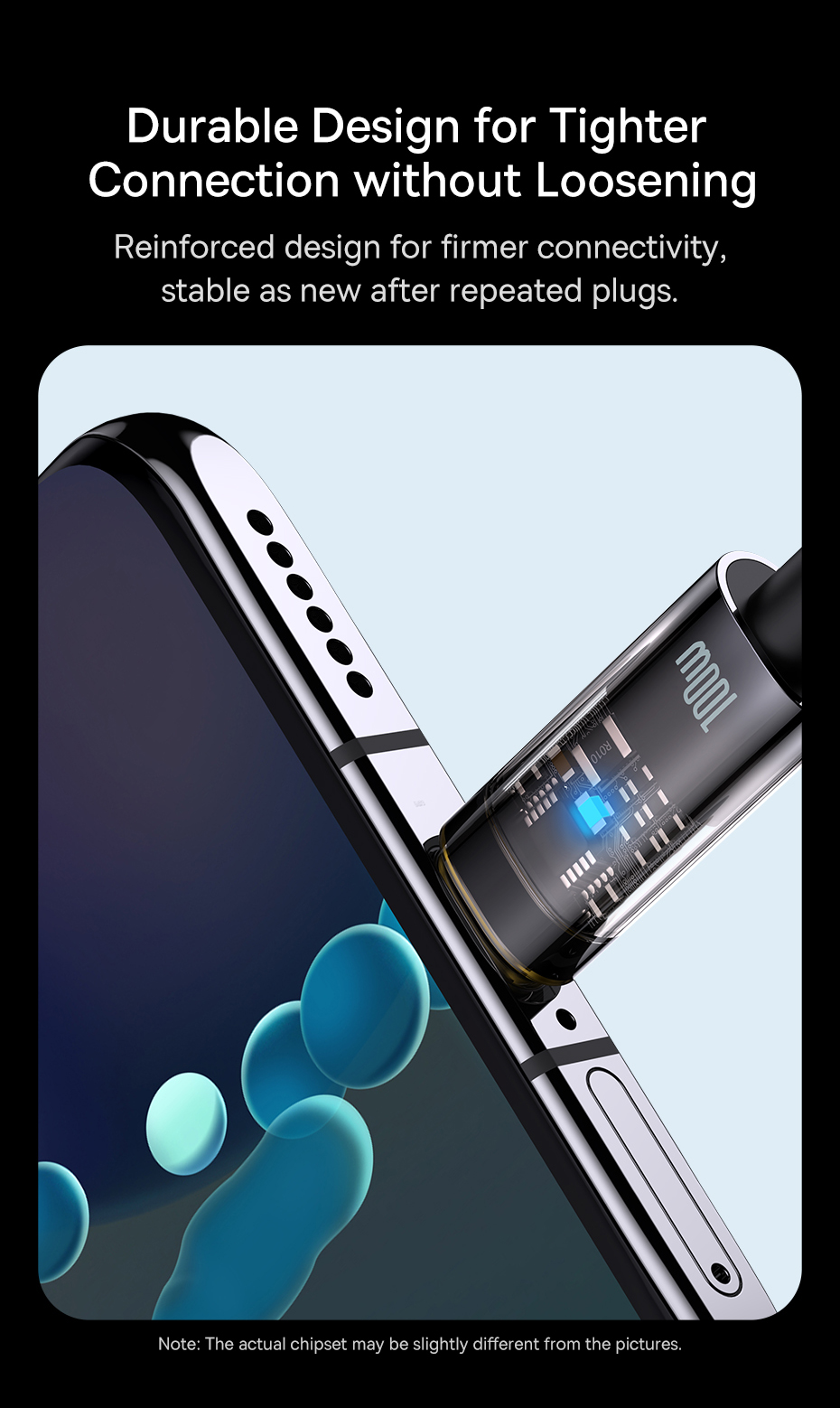 Đầu cáp với chất liệu hợp kim cao cấp siêu bền , đầu cáp và các tiếp điểm được thiết kế lại để đảm bảo bền hơn, chống gảy tốt, tiếp xúc tốt hơn và tương thích tốt hơn với điện thoại. Dây cáp được bọc vải dù siêu bền cho tuổi thọ sử dụng lâu hơn.
