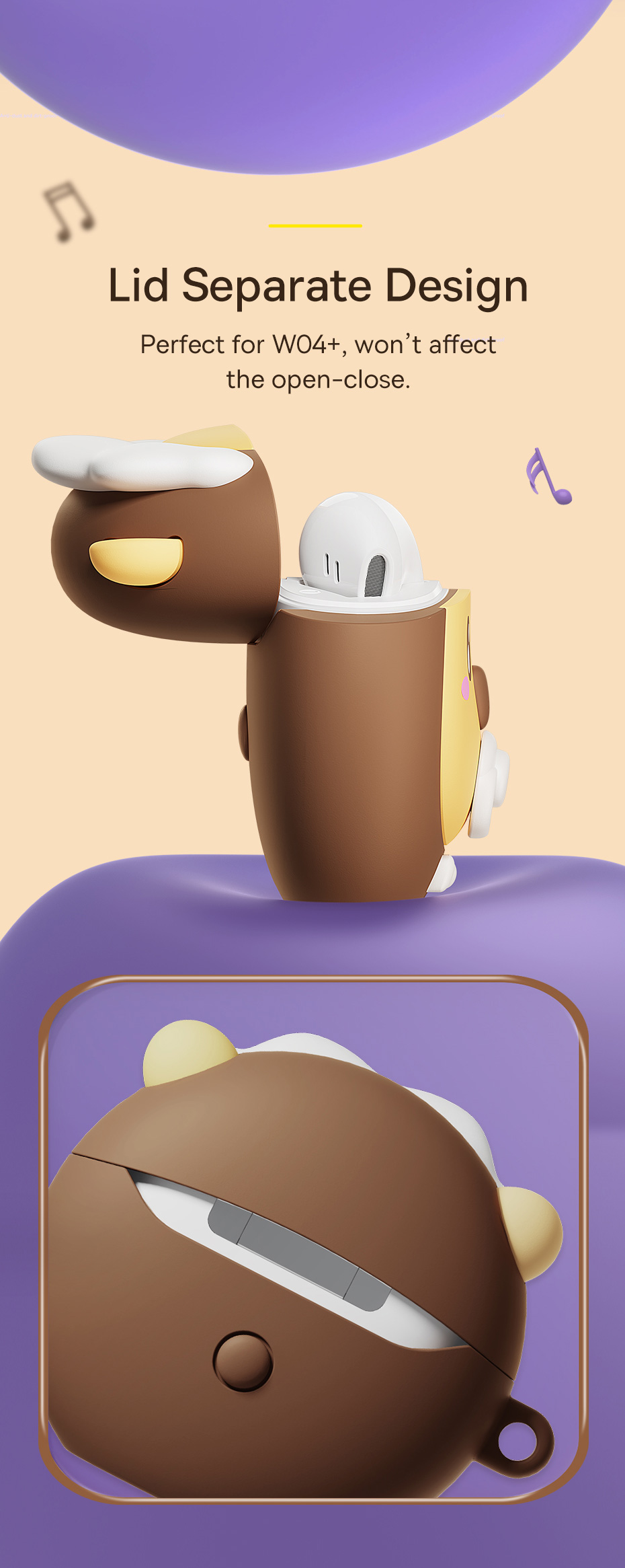 😍 THIẾT KẾ HÌNH THÚ ĐỘC QUYỀN, SIÊU DỄ THƯƠNG: Biến hộp sạc tai nghe W04+ của bạn trở nên nổi bật và đáng yêu hơn bao giờ hết. Thiết kế nhân vật ngộ nghĩnh, vui nhộn không chỉ đẹp mắt mà còn giúp bạn dễ dàng tìm thấy tai nghe của mình trong túi xách.