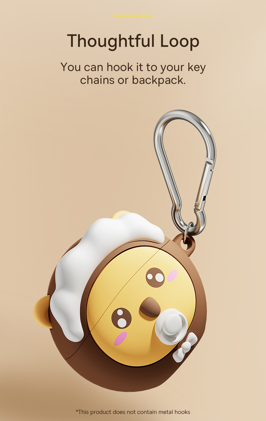 Tích hợp sẵn móc treo tiện lợi: Giúp bạn dễ dàng móc vào balo, túi xách hoặc chìa khóa.