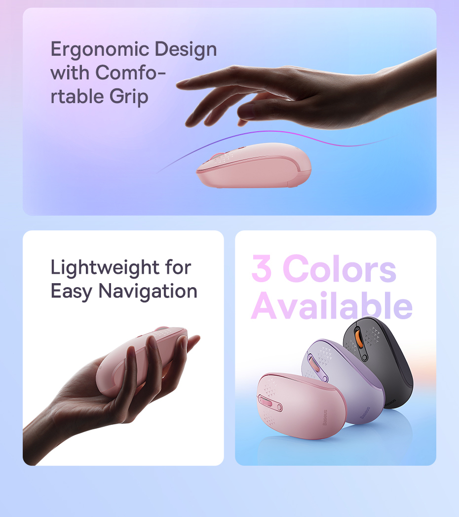 Nâng cao hiệu suất làm việc đa nhiệm của bạn với Chuột không dây Baseus F01B Tri-Mode. Với khả năng chuyển đổi liền mạch giữa 3 chế độ kết nối, cùng thiết kế click chuột im lặng, đây là người bạn đồng hành lý tưởng cho cả công việc và học tập trong mọi môi trường.