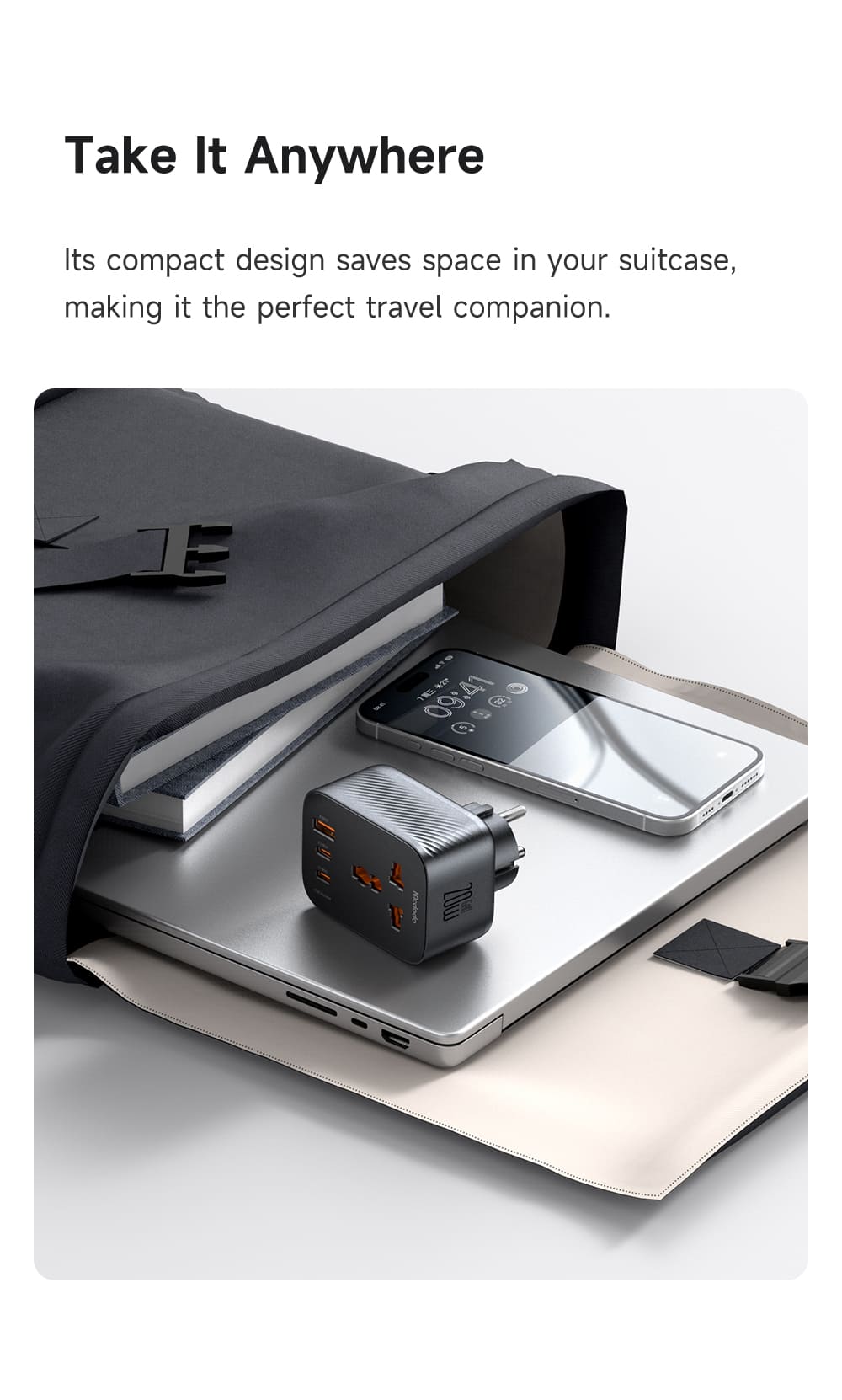 🛡️ An Toàn Tối Đa, Gọn Gàng Cho Du Lịch: Thiết kế nhỏ gọn, tiết kiệm không gian quý giá trong hành lý. Tích hợp cầu chì an toàn và các lớp bảo vệ thông minh, đảm bảo an toàn tuyệt đối cho bạn và các thiết bị.