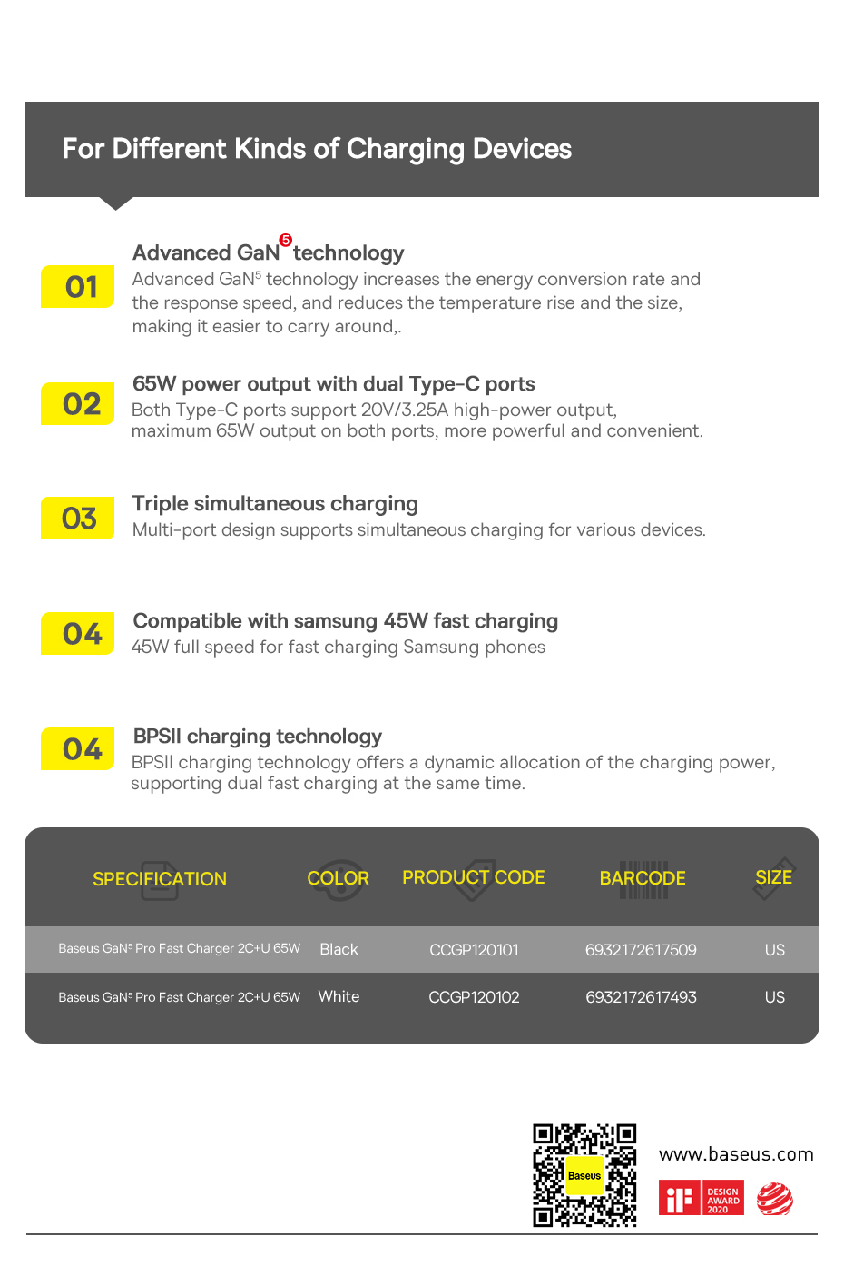 | Tên | Cốc Sạc Nhanh Baseus GaN5 Pro Fast Charger 2C+U 65W US (Kèm cáp C to C) |