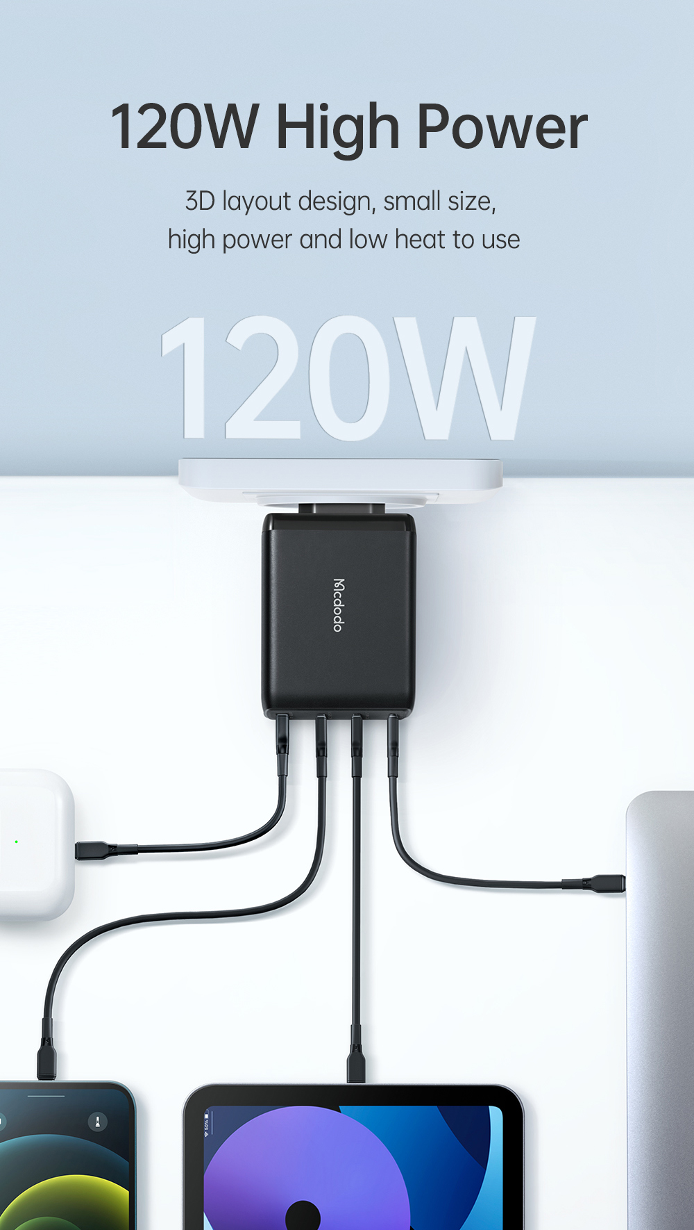 Mệt mỏi vì phải mang 3-4 củ sạc cho laptop, điện thoại, máy tính bảng? ⚡ Củ sạc Mcdodo 120W GaN chính là giải pháp "all-in-one". Với 4 cổng (3 Type-C, 1 USB), công nghệ GaN siêu nhỏ gọn và công suất 120W, củ sạc này sạc nhanh 2 laptop cùng lúc. Bộ sản phẩm còn kèm sẵn 1 cáp 100W 2m!