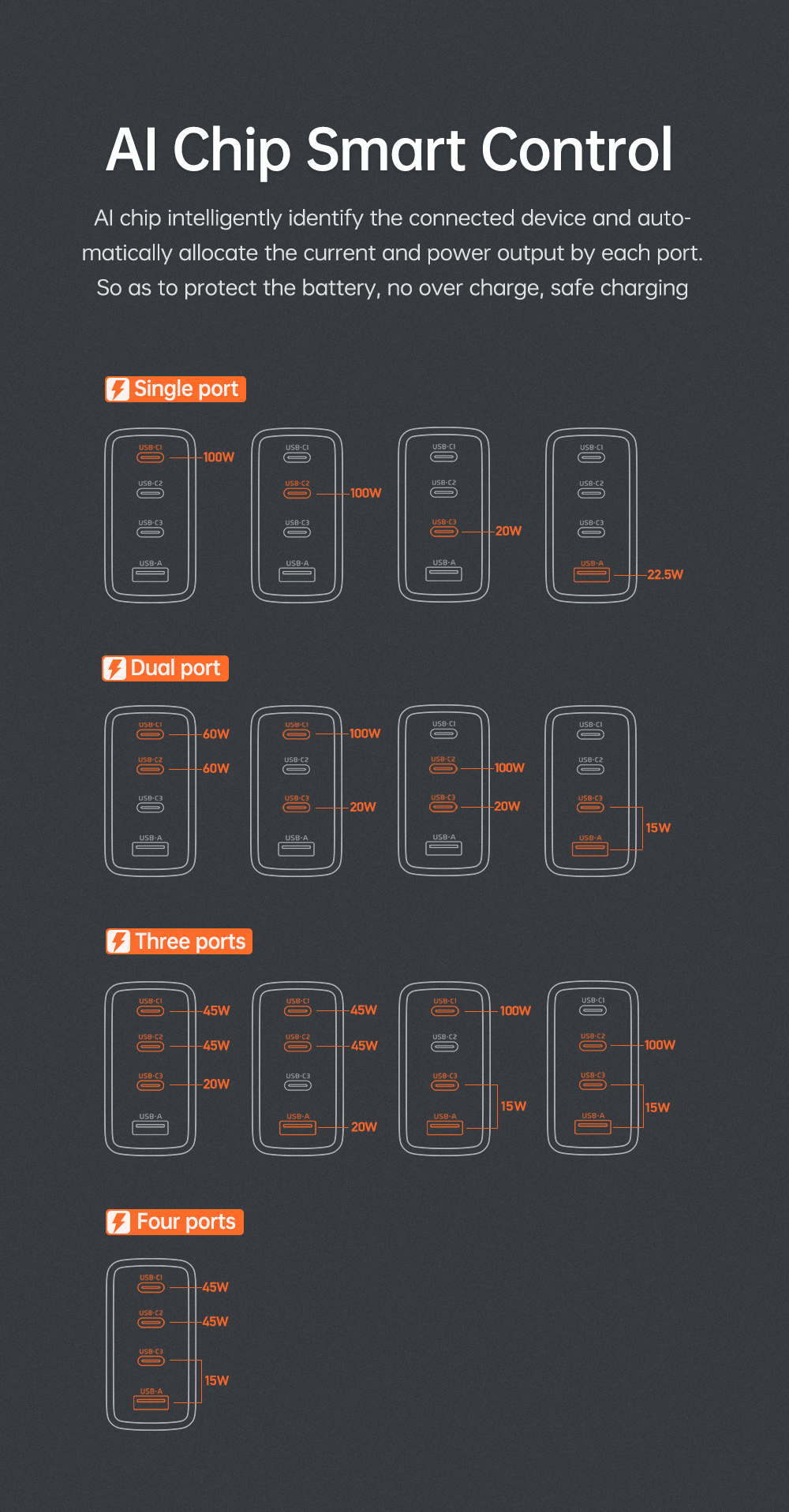 | Type-C3 Output | 5V-3A, 9V-2.22A, 12V-1.67A, 15V-1.33A, 20V-1A |
