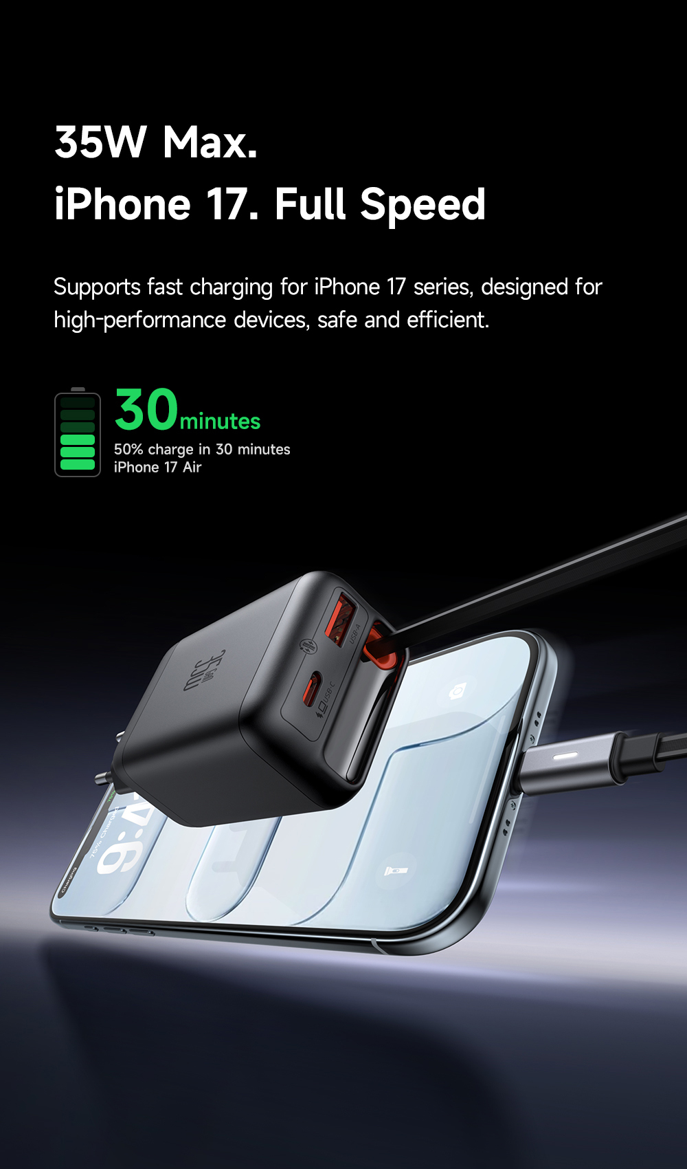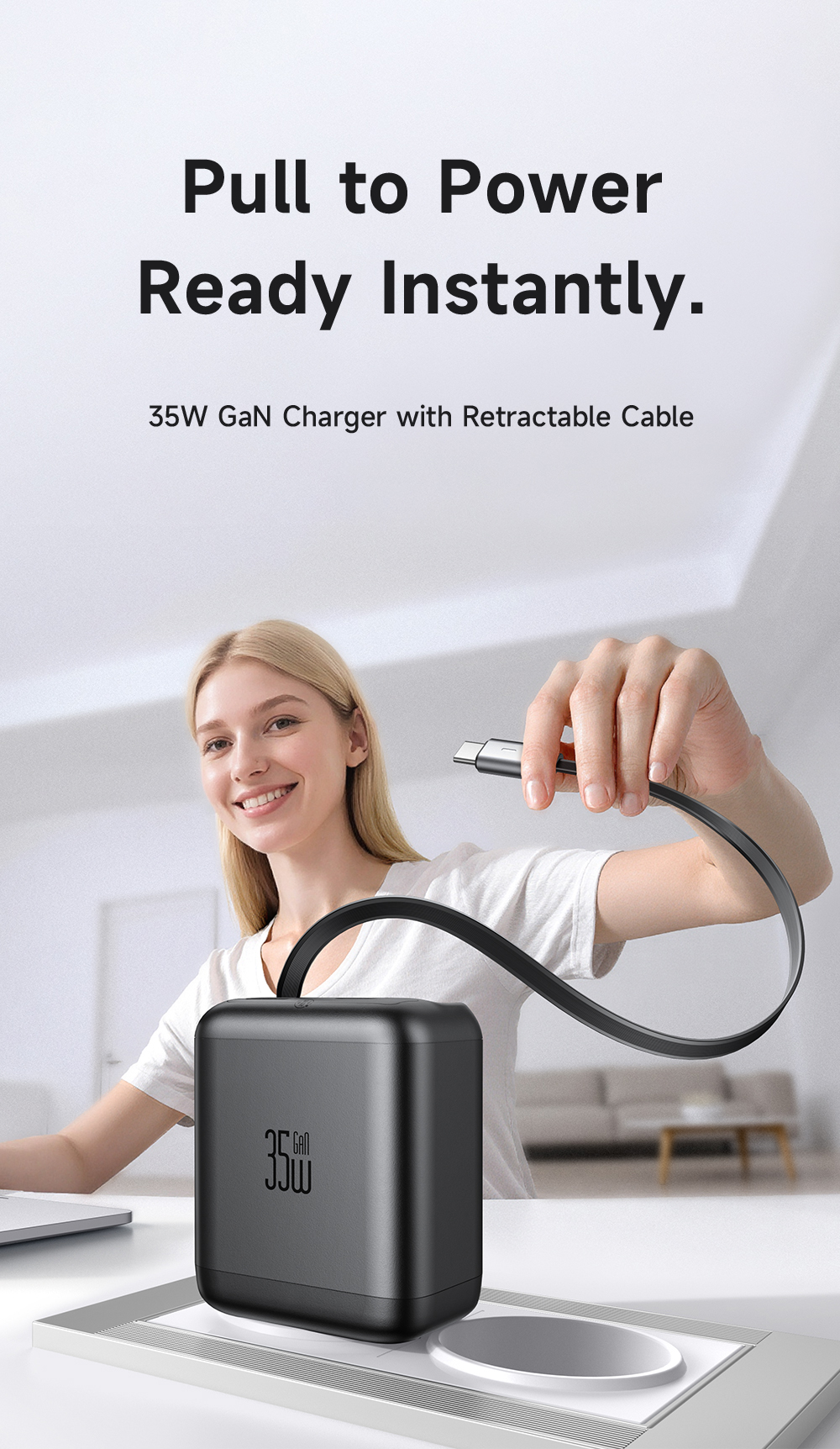 Công suất 35W: Đảm bảo sạc nhanh cho điện thoại, máy tính bảng và các phụ kiện.