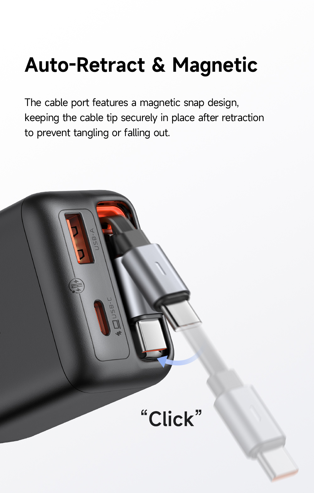 🔌 Tích Hợp Dây Sạc Type-C Rút Gọn: Không bao giờ quên dây sạc nữa! Dây Type-C tích hợp có thể dễ dàng kéo ra để sử dụng và tự động thu gọn lại chỉ với một thao tác, giữ cho túi xách và bàn làm việc của bạn luôn ngăn nắp.