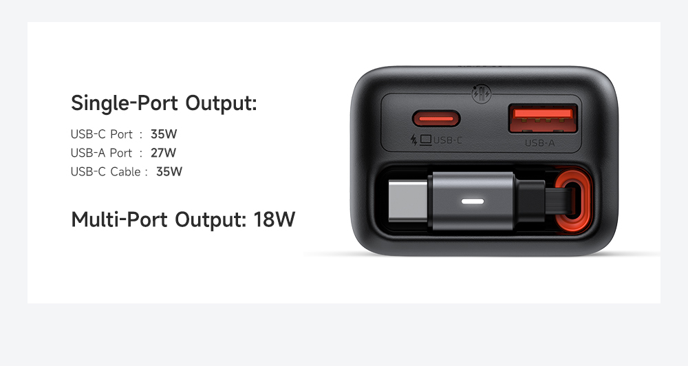 | Type-C Output | 5V-3A, 9V-3A, 12V-2.91A, 15V-2.33A, 20V-1.75A 35W Max |
