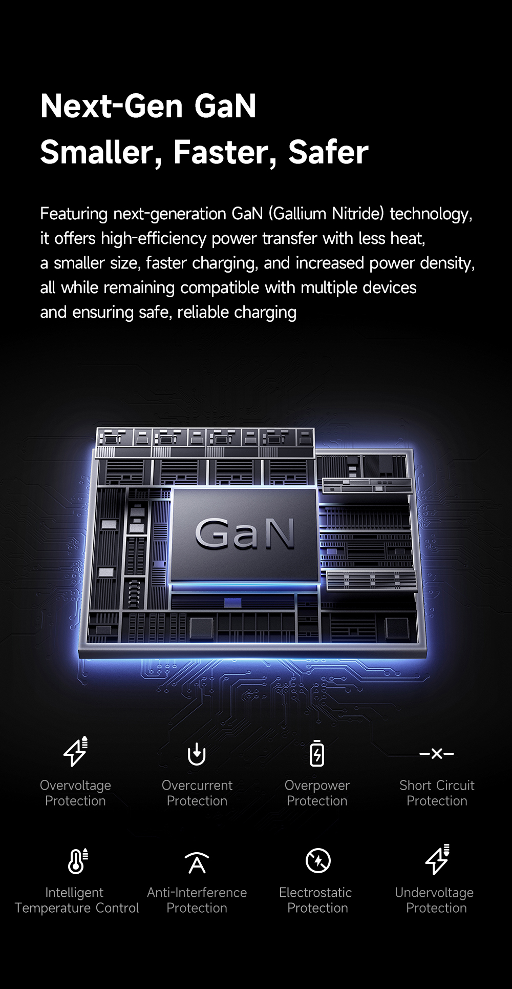 Công nghệ GaN tiên tiến: Giúp củ sạc có kích thước nhỏ gọn, hiệu suất cao và hoạt động mát mẻ.