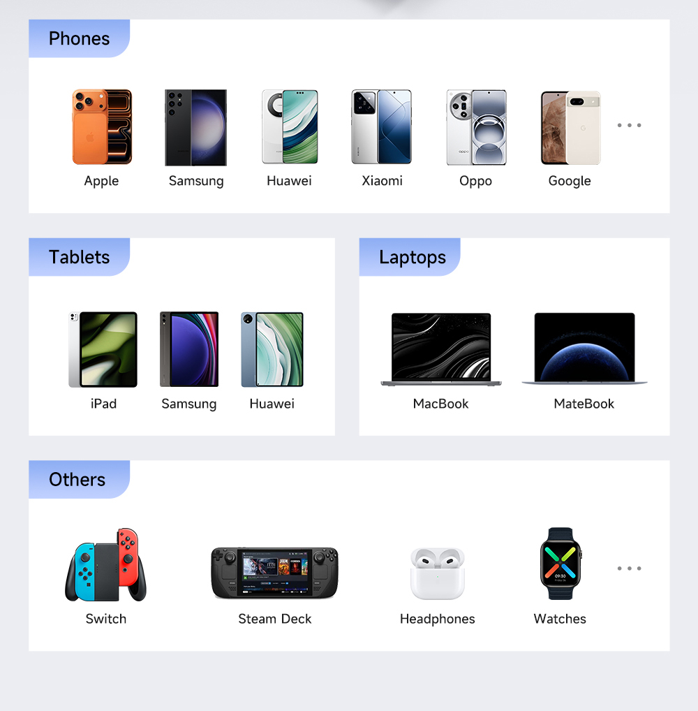 ✅ Tương Thích Rộng Rãi: Hỗ trợ nhiều chuẩn sạc nhanh phổ biến, giúp sạc hiệu quả cho hầu hết các thiết bị di động từ nhiều thương hiệu khác nhau.