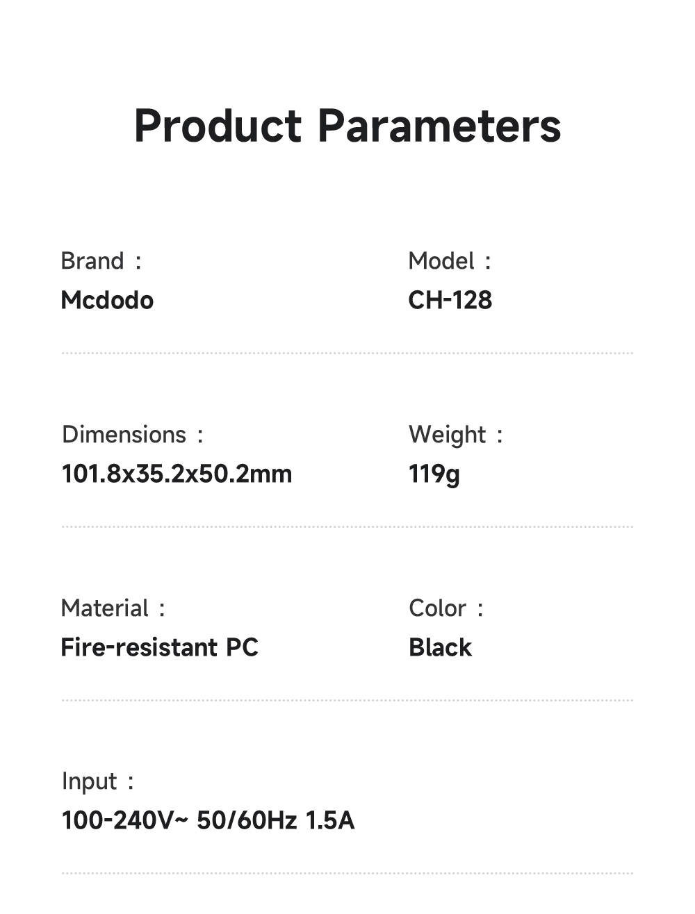 | Total Output | 5V-3.6A 18W |