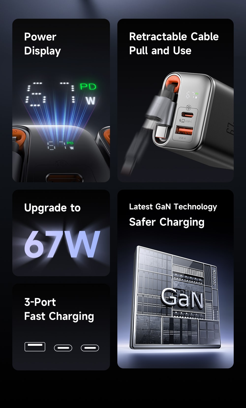 | Tên | Cốc Sạc Nhanh Mcdodo FreeGo 67W GaN Charger with Built-in Retractable Cable |