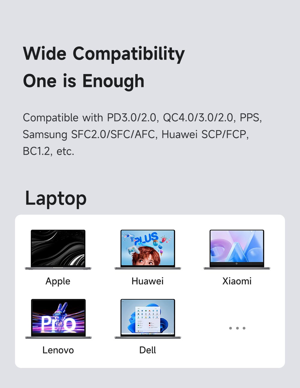 ○ Hỗ trợ sạc nhanh công suất cao cho laptop, máy tính bảng và điện thoại.