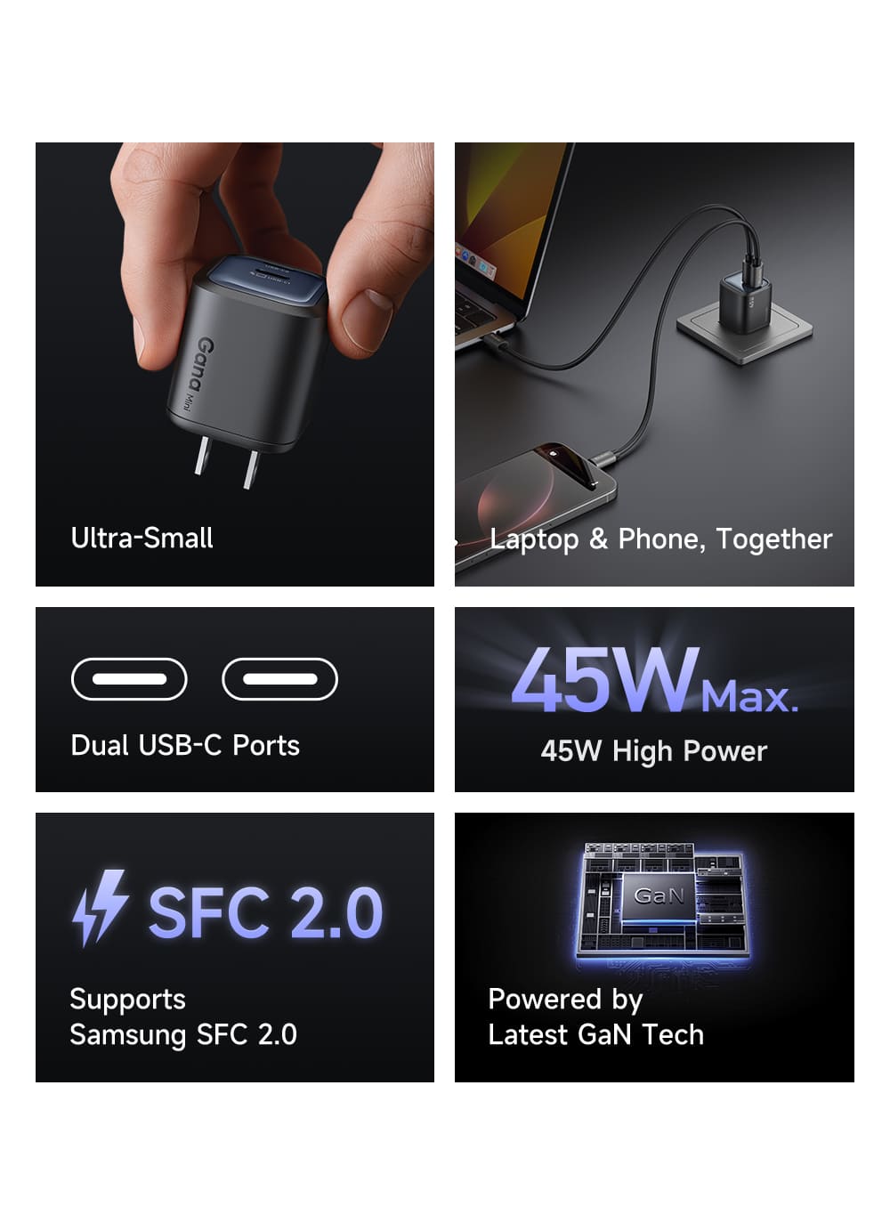 ○ Công nghệ GaN siêu nhỏ gọn, hiệu suất cao.