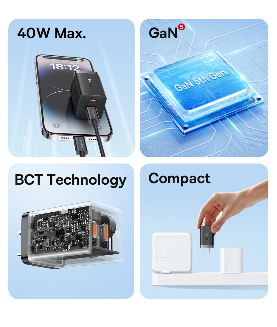 Bạn cần sạc nhanh cho cả điện thoại và máy tính bảng nhưng lại ngán ngẩm với những củ sạc to và cồng kềnh? Baseus GaN5 Pro 40W chính là giải pháp hoàn hảo. Với sức mạnh sạc kép 20W+20W và công nghệ GaN thế hệ thứ 5, củ sạc này nhỏ hơn 50% so với sạc thông thường, mang lại sự tiện lợi tối đa.