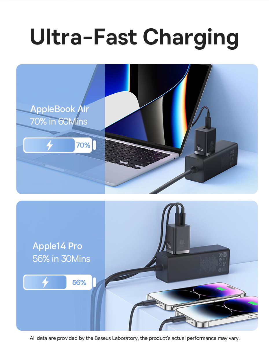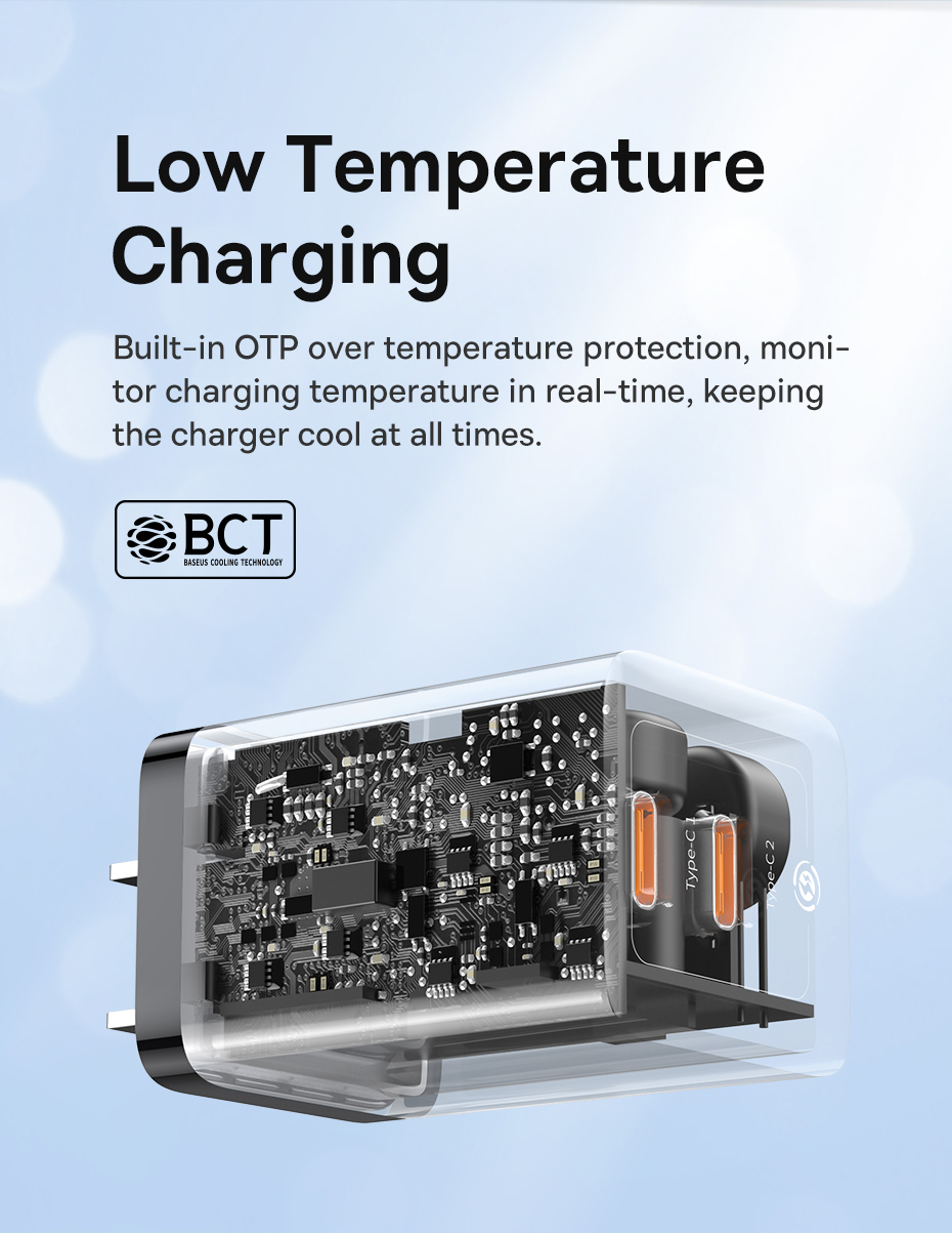 🛡️ CÔNG NGHỆ BCT, SẠC AN TOÀN & MÁT MẺ: An tâm sạc mọi lúc. Công nghệ tản nhiệt BCT độc quyền của Baseus kết hợp với chip GaN hiệu suất cao giúp củ sạc luôn hoạt động ở nhiệt độ thấp ngay cả khi đang sạc nhanh, bảo vệ an toàn tối đa cho pin và thiết bị của bạn.