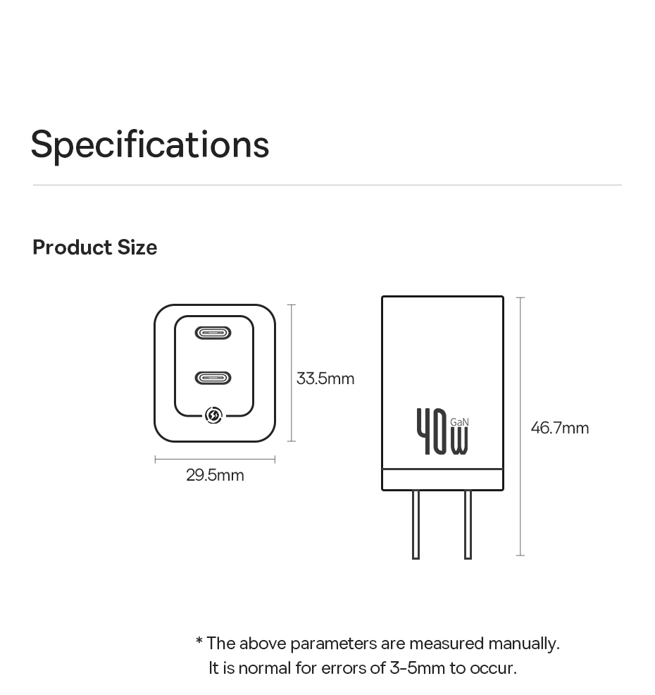 🤏 CÔNG NGHỆ GAN5 PRO, KÍCH THƯỚC SIÊU NHỎ: Nhỏ hơn 50% so với củ sạc 30W thông thường! Công nghệ GaN thế hệ thứ 5 tiên tiến cho phép tích hợp sức mạnh 40W vào một thân hình siêu nhỏ gọn, không chỉ tiết kiệm không gian trong túi xách mà còn không chiếm diện tích ổ cắm.