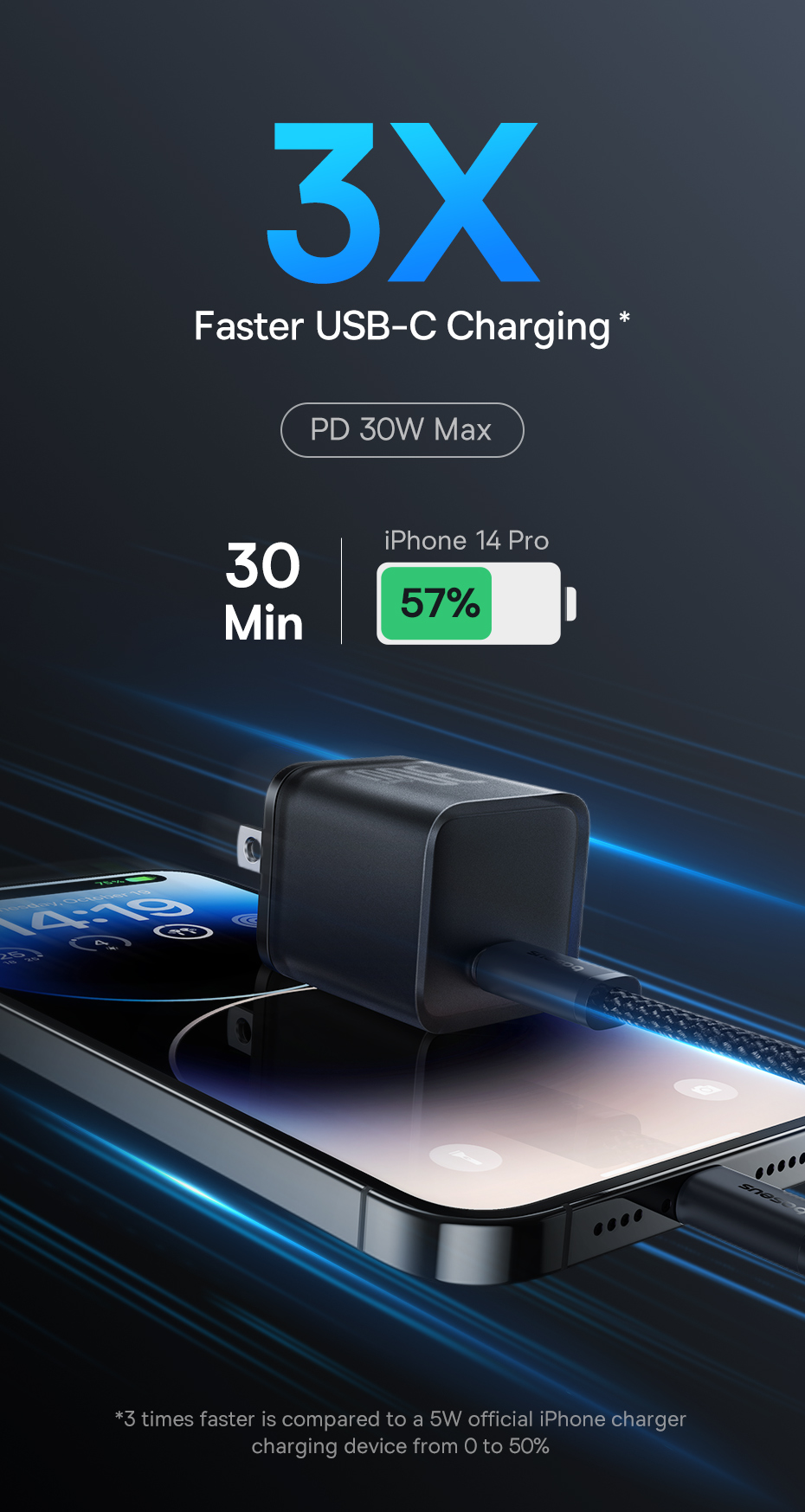 ⚡ SẠC NHANH PD 30W - TỐC ĐỘ GẤP 3 LẦN: Tăng tốc độ sạc lên gấp 3 lần so với sạc thường. Hỗ trợ sạc nhanh Power Delivery công suất 30W, sạc đầy 57% pin cho iP14 Pro chỉ trong 30 phút, tiết kiệm thời gian chờ đợi đáng kể.