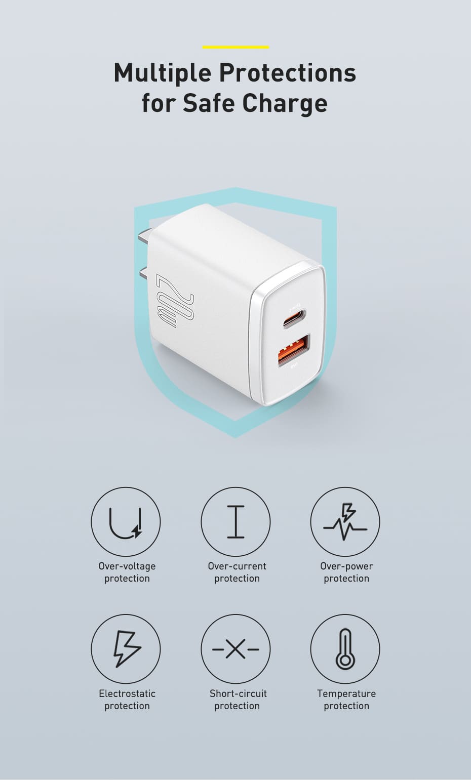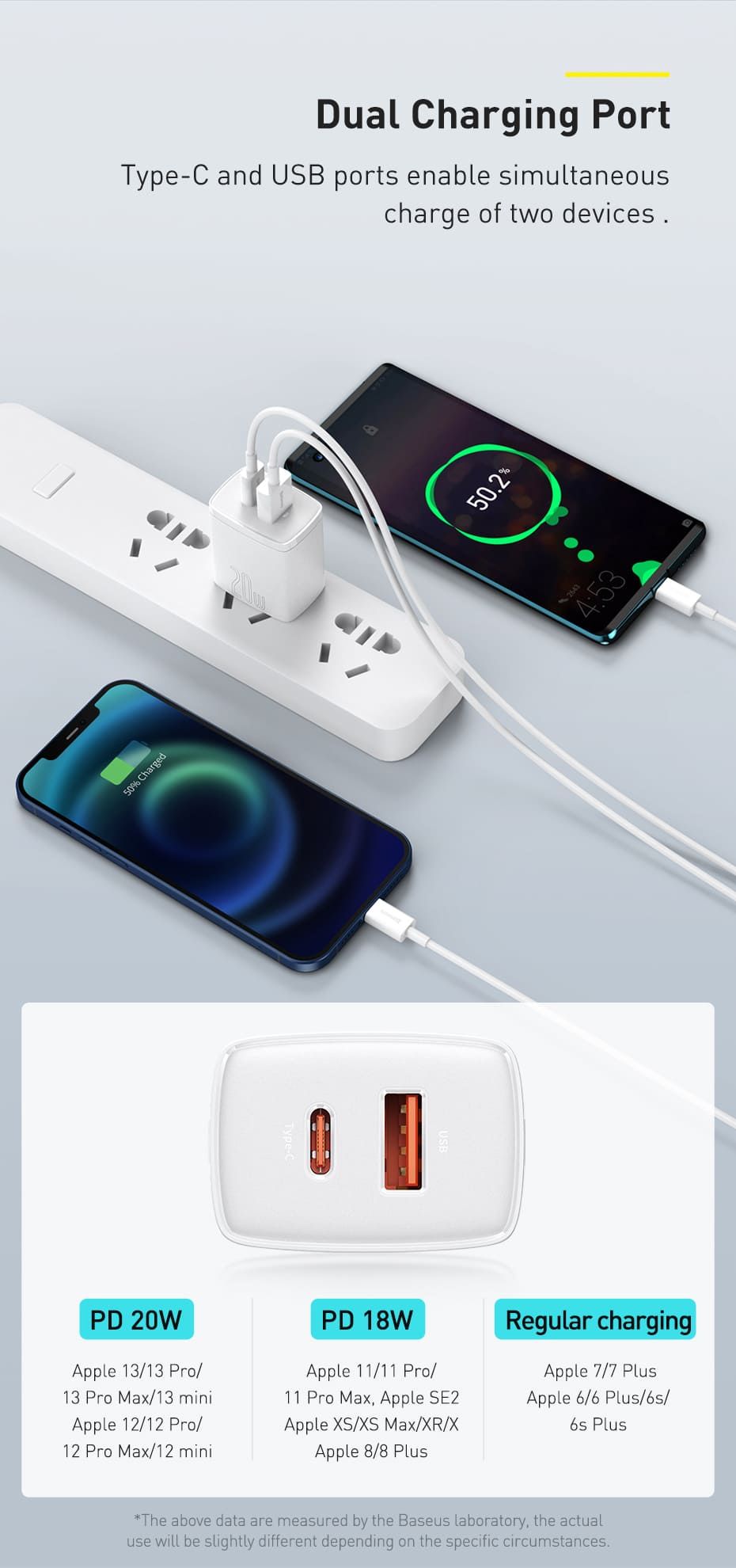 Tạm biệt sự phiền phức khi phải mang theo nhiều củ sạc cồng kềnh. Với Baseus Compact 20W, bạn đã có một giải pháp sạc "tất cả trong một" siêu nhỏ gọn, mạnh mẽ để cung cấp năng lượng cho hai thiết bị cùng lúc một cách nhanh chóng và an toàn.