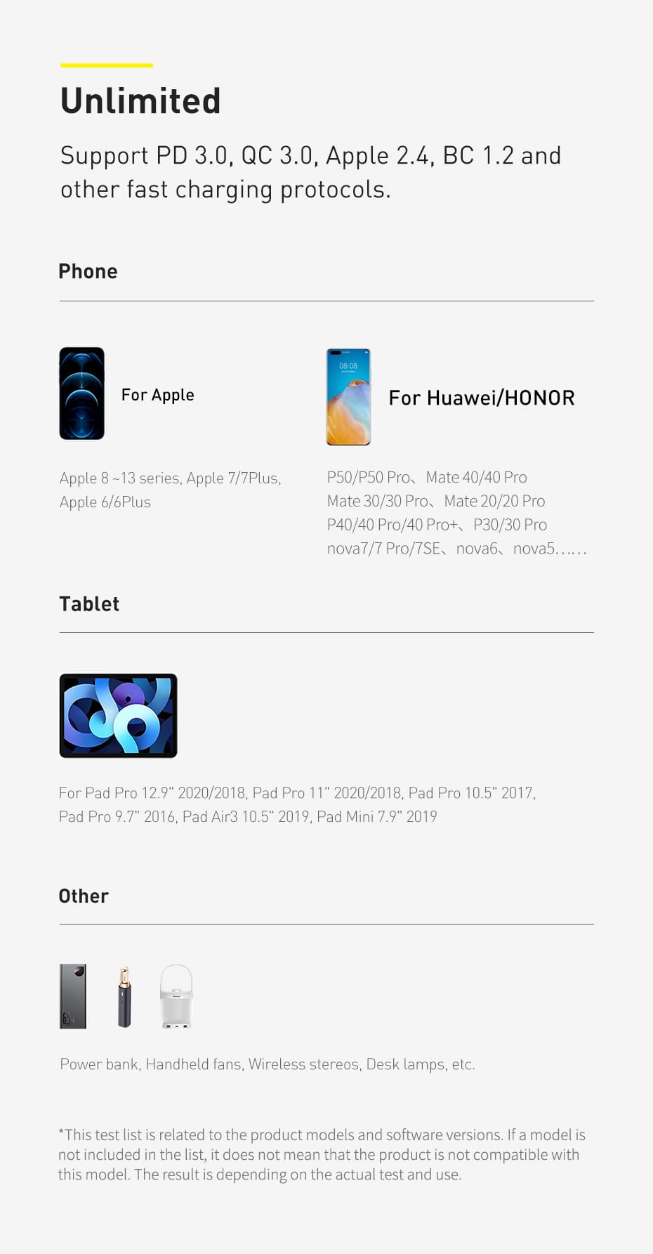 | Type-C | 5V-3A, 9V-2.22A, 12V-1.67A |