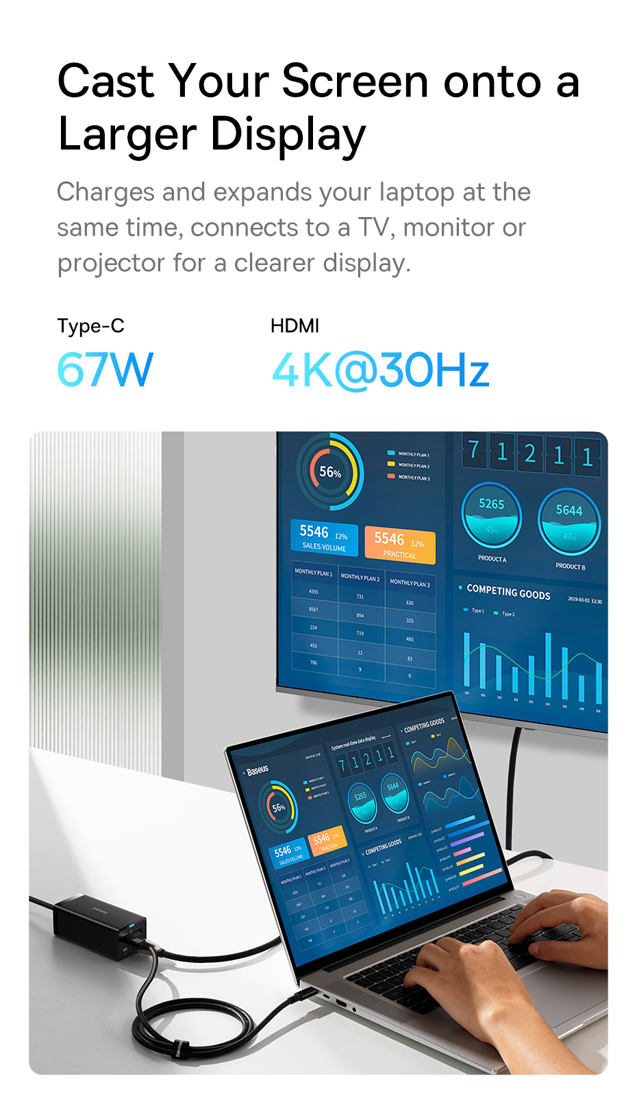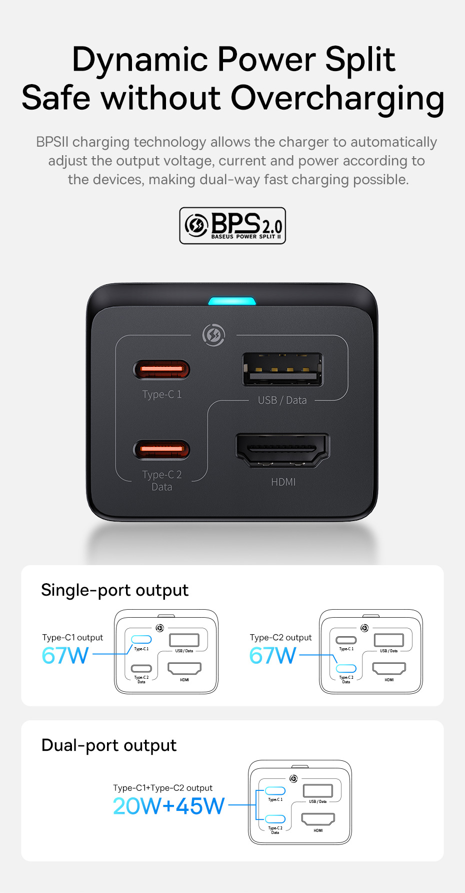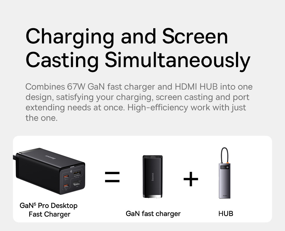Thiết Kế 2-trong-1: Củ sạc GaN 67W kết hợp Hub HDMI.