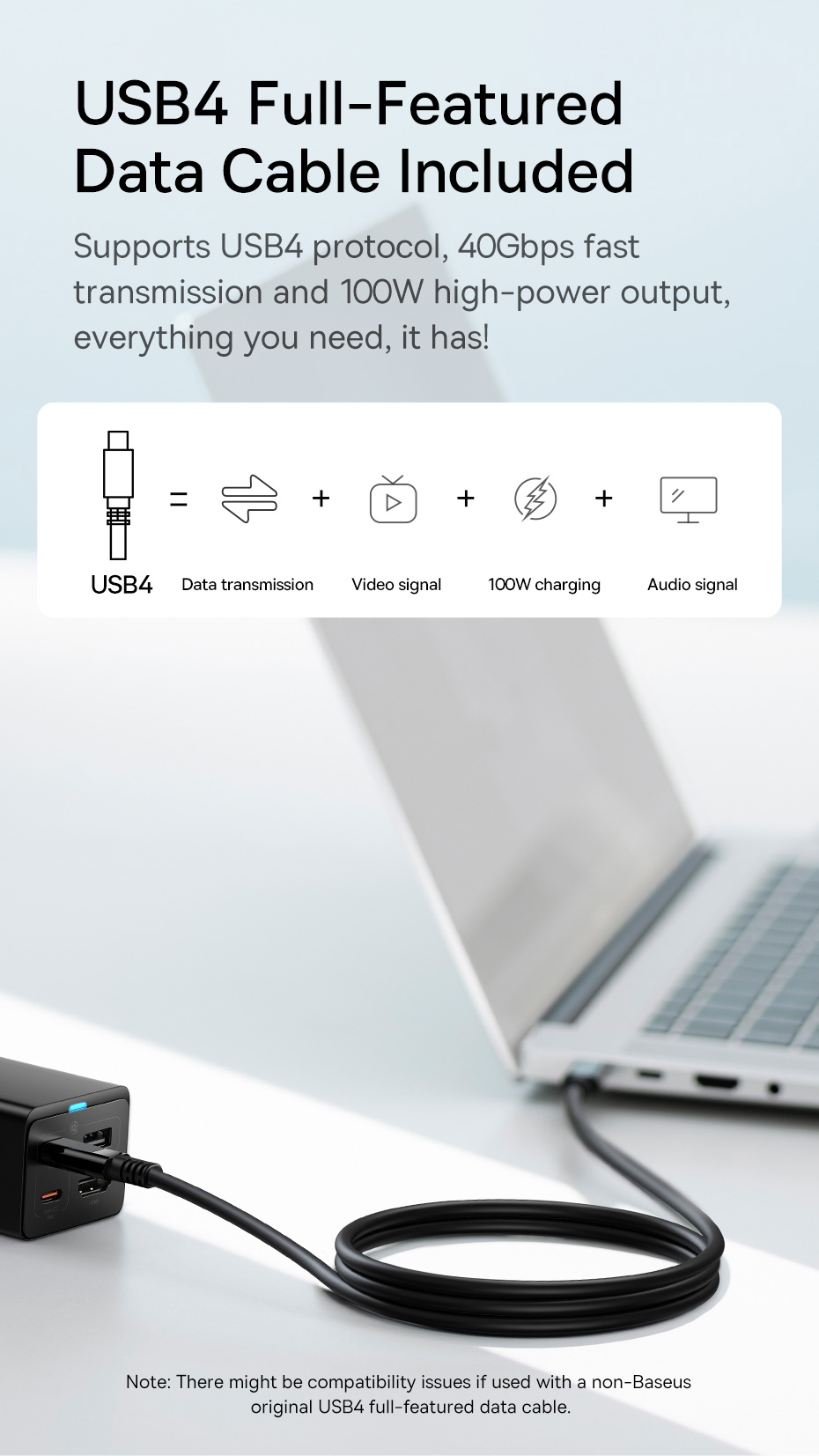 Tặng Kèm Cáp USB4: Cáp 100W (20V/5A) full-featured, truyền dữ liệu 40Gbps.