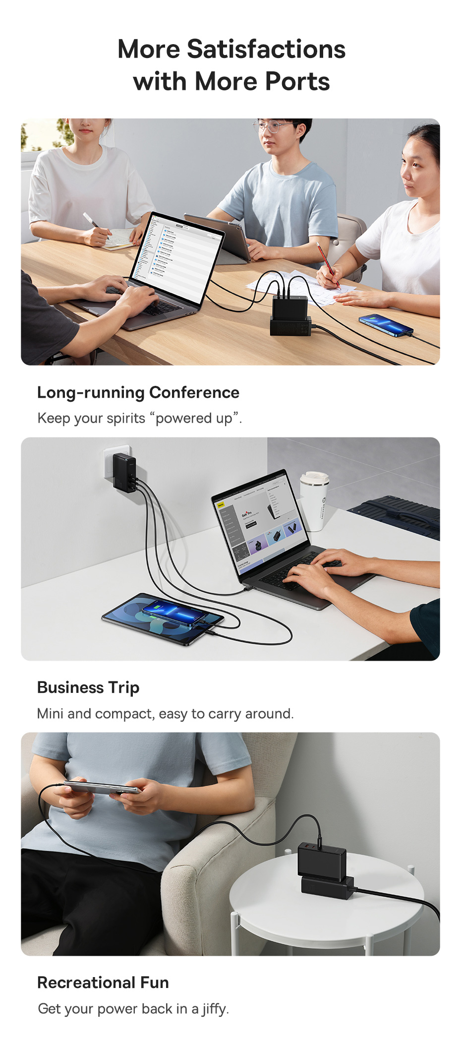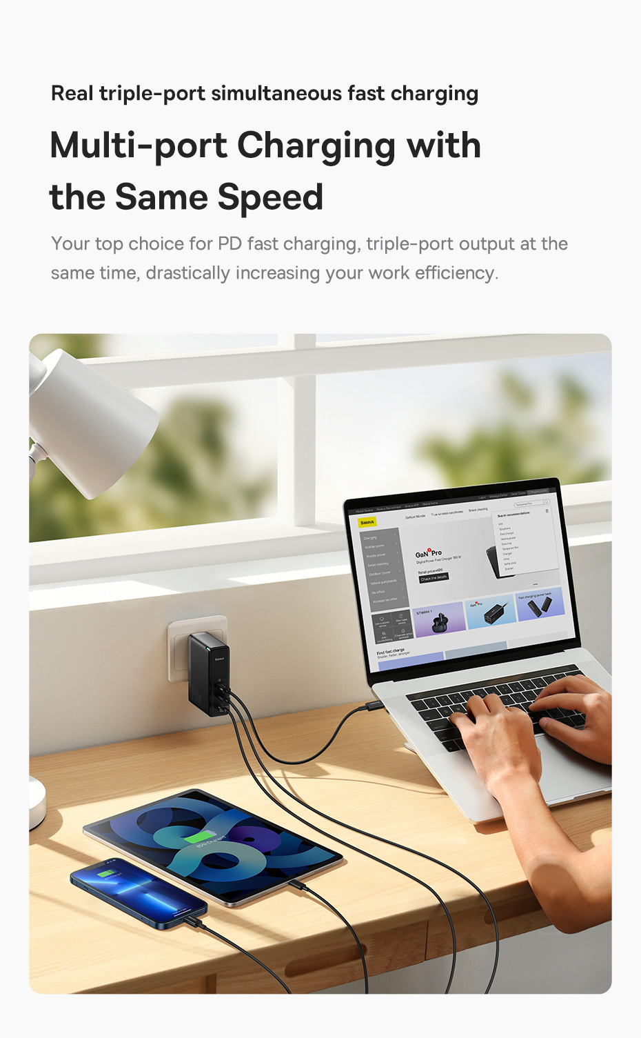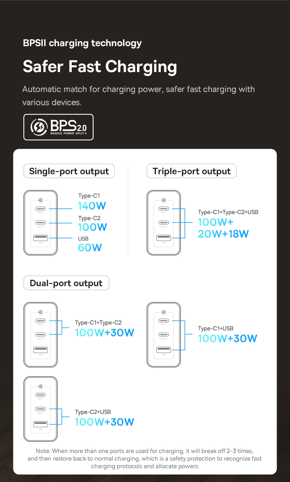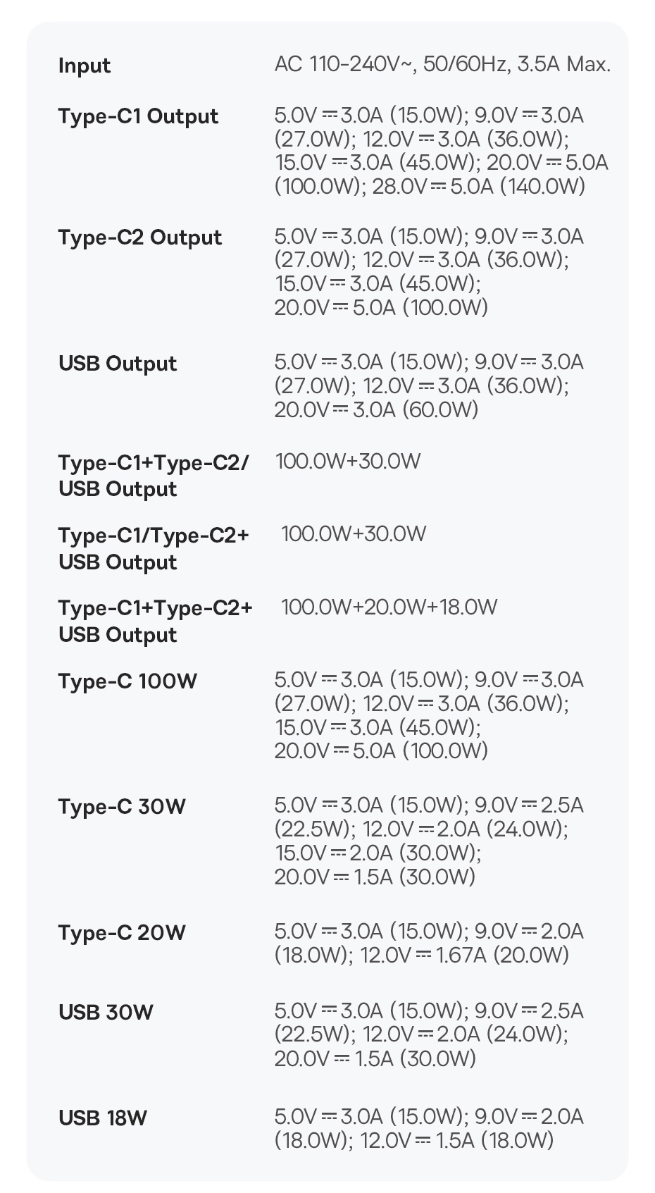 | Type-C1 + Type-C2 + UBS Output | 100W + 20W + 18W |