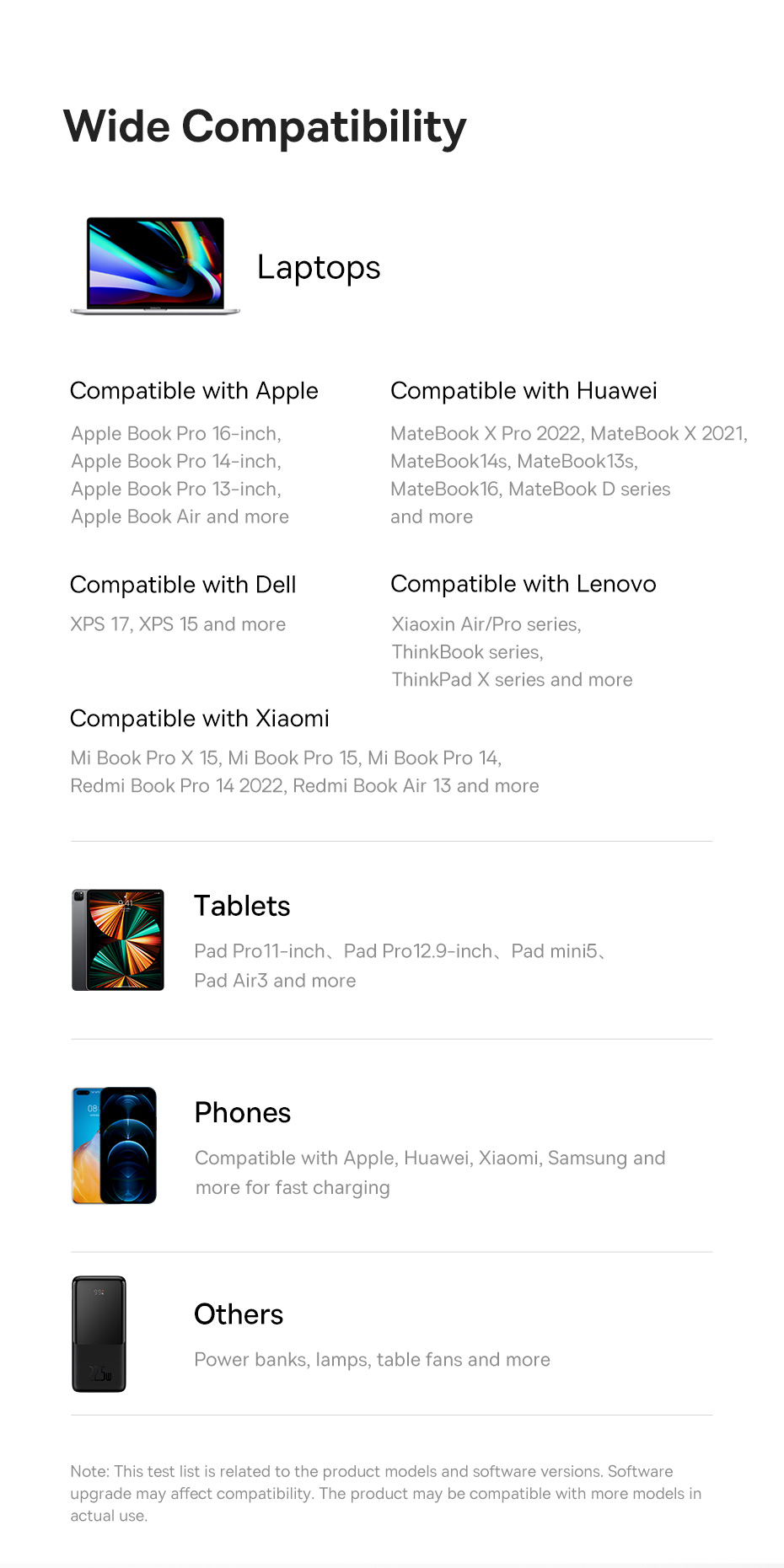 | Type-C 100W | 5V-3A, 9V-3A, 12V-3A, 15V-3A, 20V-5A |
