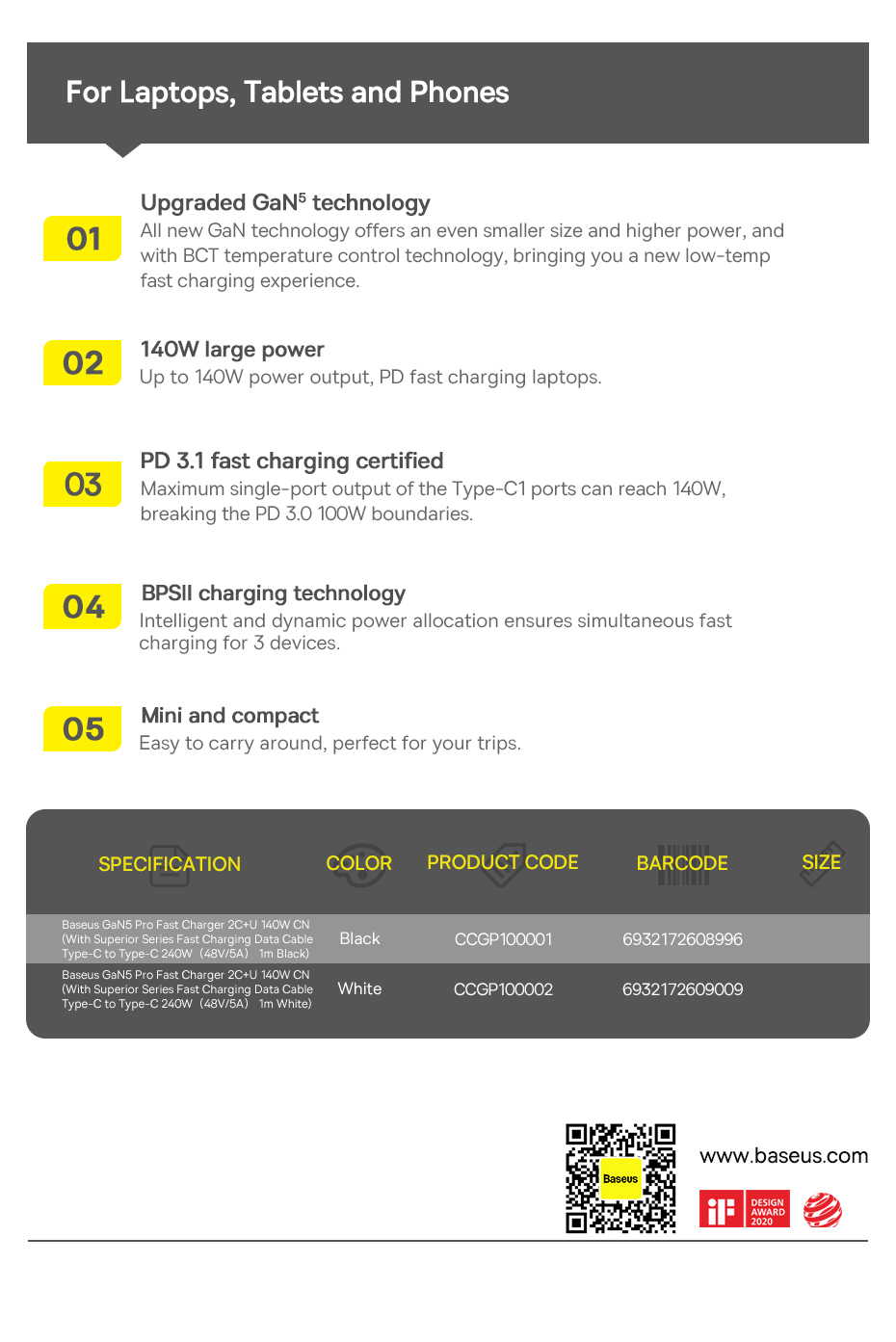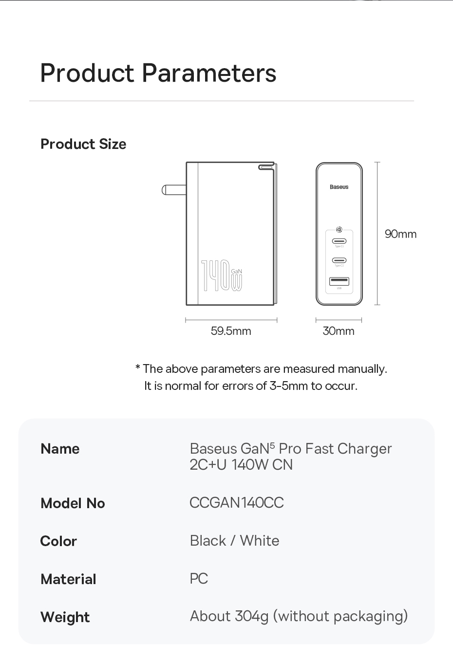 | Tên | Baseus GaN5 Pro Fast Charger 140W |