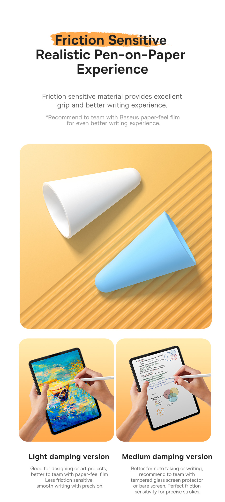 Light Damping (Ma Sát Nhẹ): Cảm giác viết gần với ngòi gốc hơn, lướt mượt mà, phù hợp cho thao tác nhanh và vẽ phác thảo.