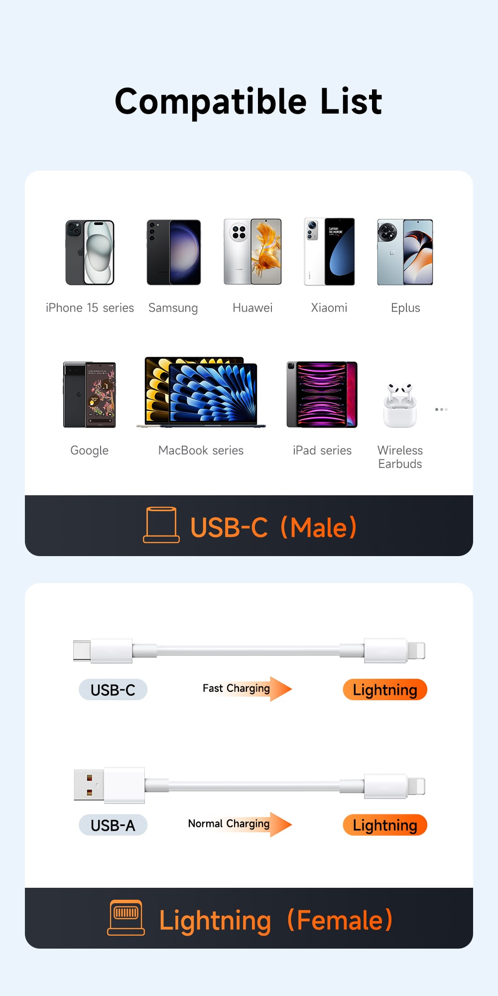 🔌 TẬN DỤNG CÁP CŨ - TIẾT KIỆM CHI PHÍ: Giải pháp hoàn hảo cho các thiết bị Type-C đời mới. Thay vì phải mua một loạt cáp Type-C mới, bạn chỉ cần một đầu chuyển nhỏ gọn này để biến tất cả cáp Ln hiện có của mình thành cáp Type-C.