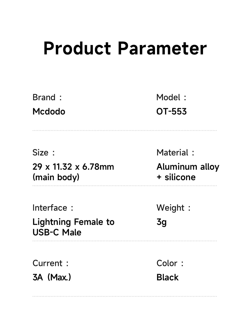 | Tên | Đầu Chuyển Đổi Mcdodo iP to Type-C PD Adapter |