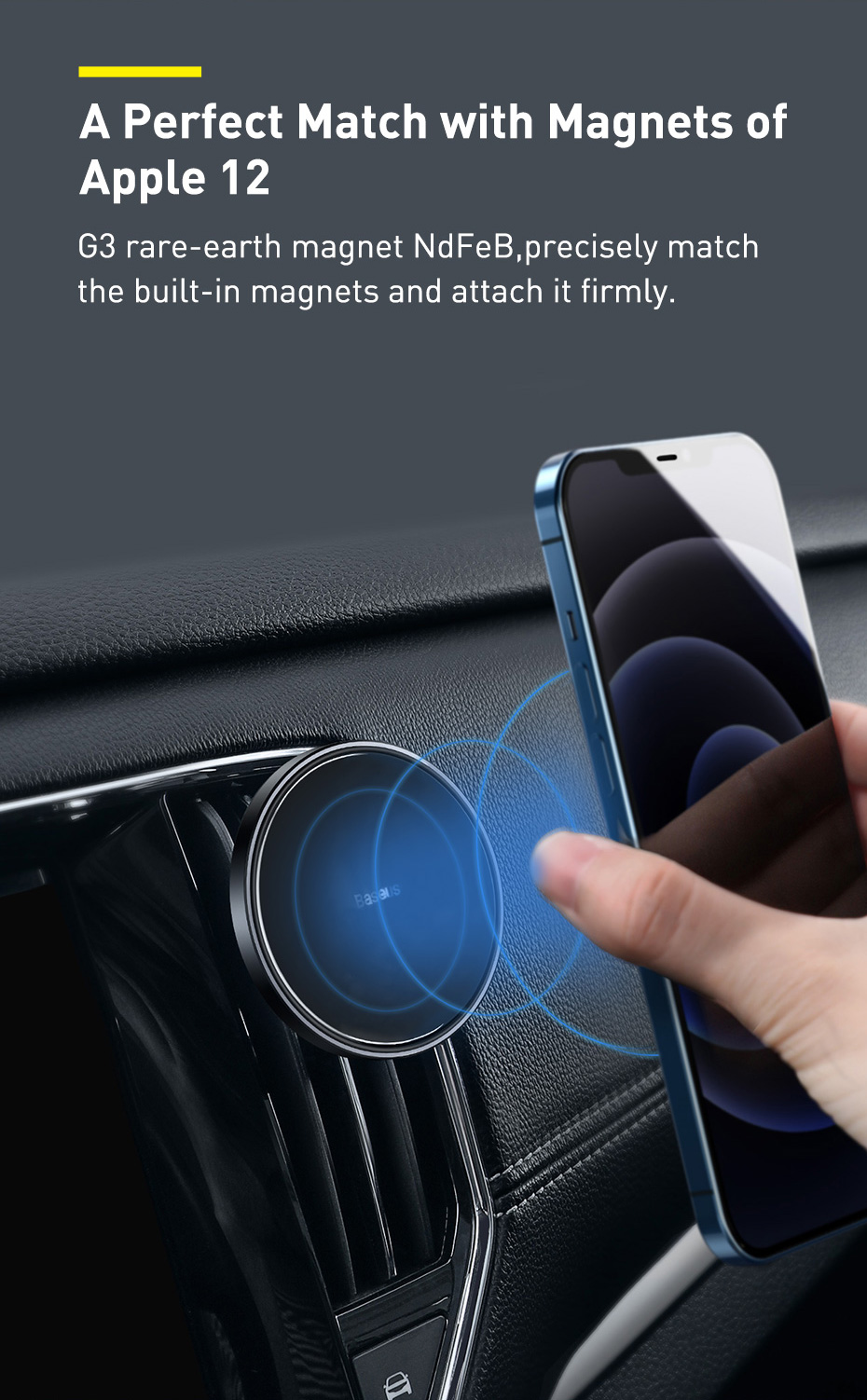 Trải nghiệm sự tiện lợi tối đa "chỉ cần hít là dính" với giá đỡ điện thoại nam châm Baseus. Được thiết kế chuyên biệt để tương thích hoàn hảo với vòng nam châm trên các dòng điện thoại từ series 12 trở lên, giá đỡ này giúp bạn gắn và tháo điện thoại chỉ trong 1 giây, cực kỳ nhanh chóng và an toàn khi lái xe.
