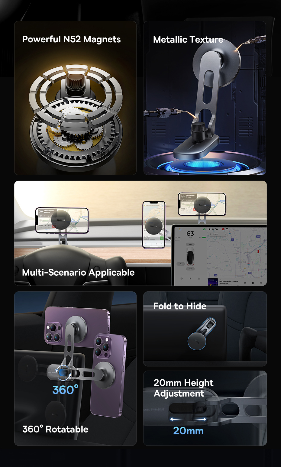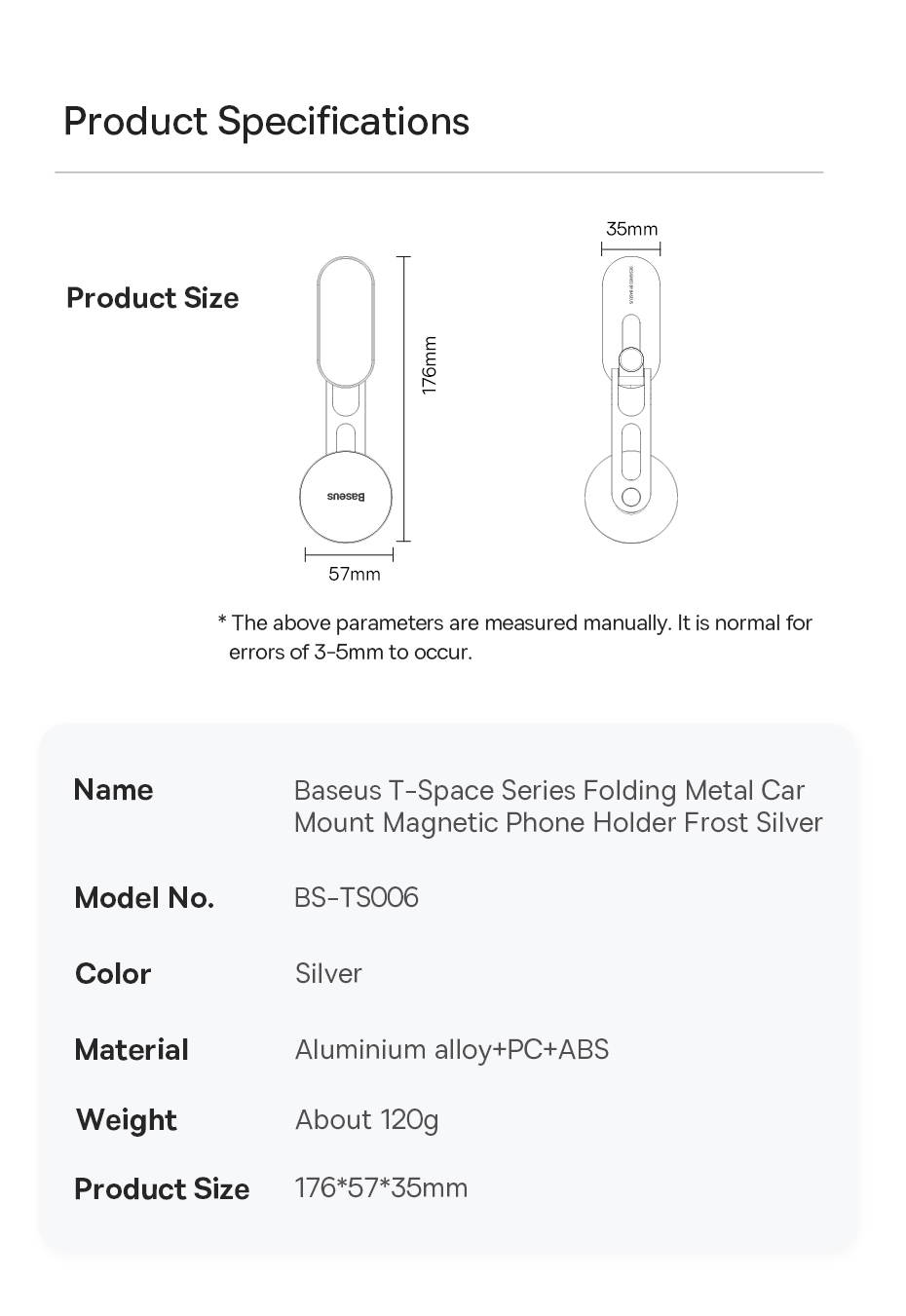 | Tên | Đế Giữ Điện Thoại Ôtô Baseus T-Space Series Folding Metal Car Mount Magnetic Phone Holder Frost Silver |