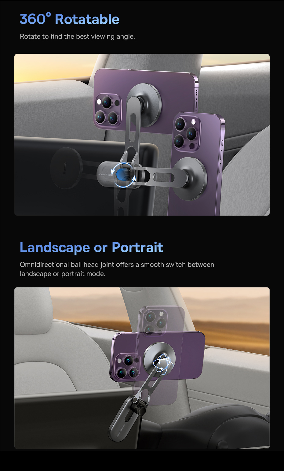 🔄 XOAY 360° & ĐIỀU CHỈNH ĐỘ CAO: Thiết kế khớp nối kép cho phép bạn xoay 360 độ và điều chỉnh độ cao (20mm) một cách linh hoạt, dễ dàng tìm được góc nhìn hoàn hảo mà không che khuất tầm nhìn hay màn hình xe.