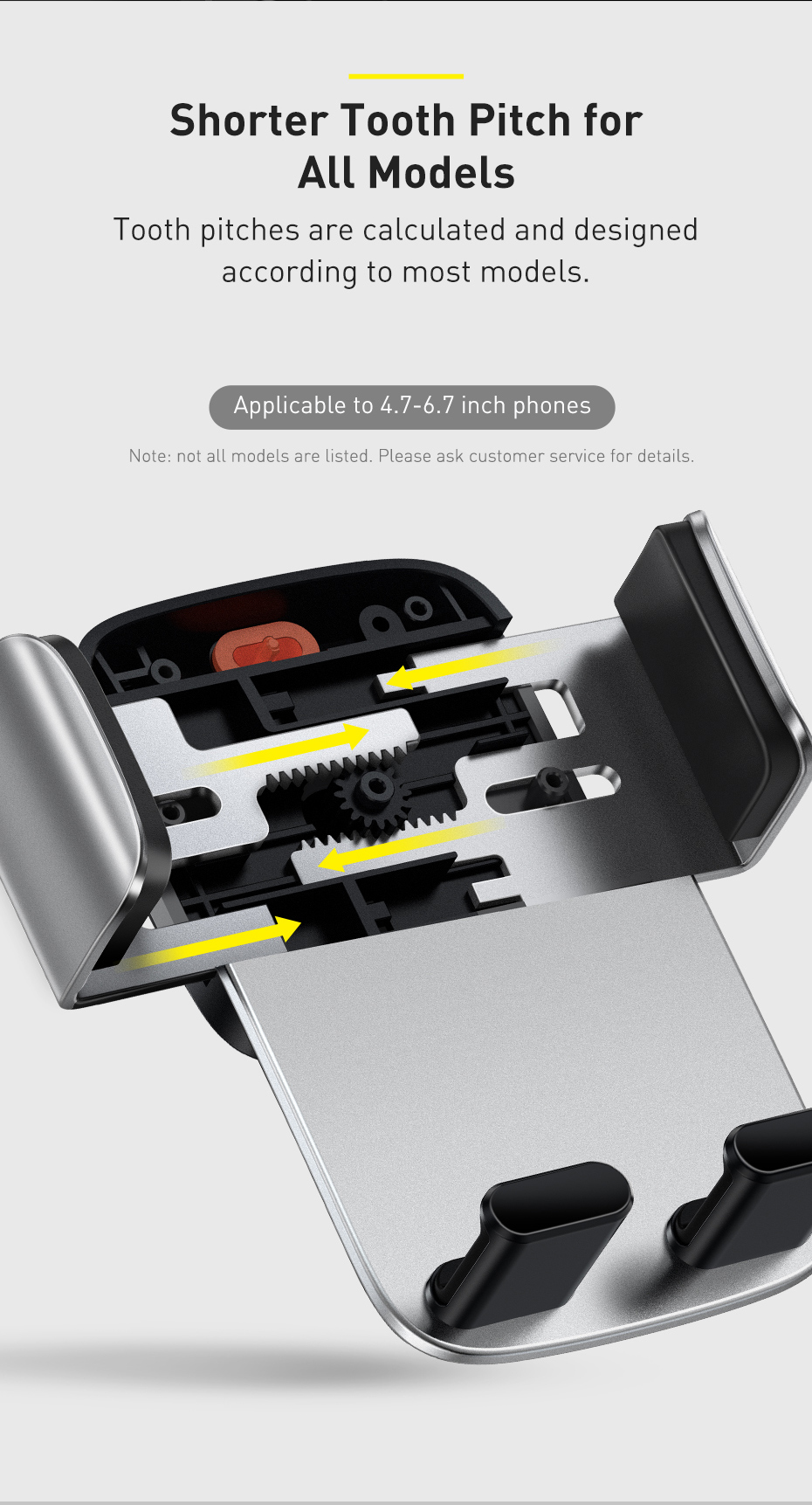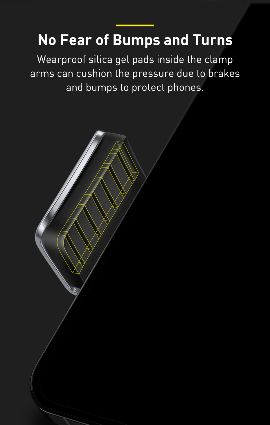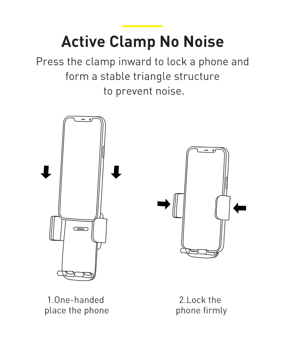 Cơ chế kẹp chắc chắn: Kẹp điện thoại bằng lực ép cơ học, giữ chặt thiết bị không bị rung lắc khi xe di chuyển.
