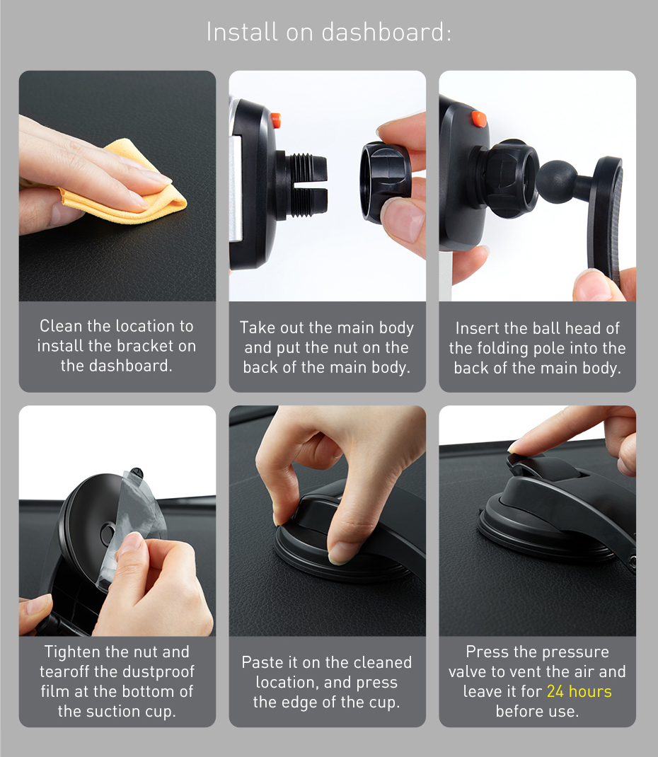Chân đế hút chân không hoặc dán cố định: Có thể gắn lên kính chắn gió hoặc bảng táp-lô chắc chắn và ổn định.