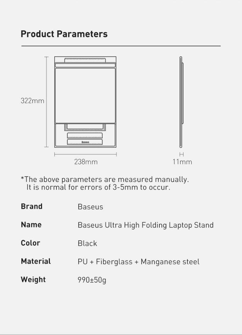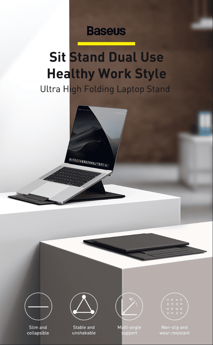 Đế Giữ Laptop Baseus Ultra High | Xếp Gọn Siêu Mỏng, Chỉnh Góc Nghiêng, Tản Nhiệt Tốt, Chịu Lực Tốt