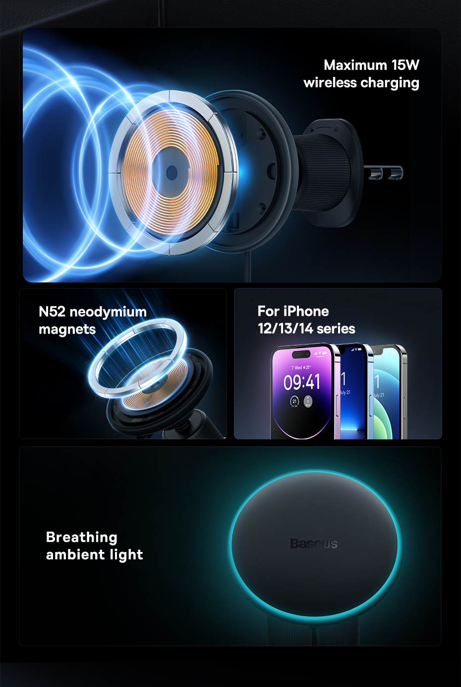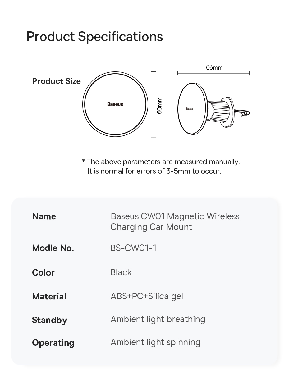 | Tên | Đế Sạc Không Dây Baseus CW01 Magnetic Wireless Charging Car Mount Air Vent Version 15W |