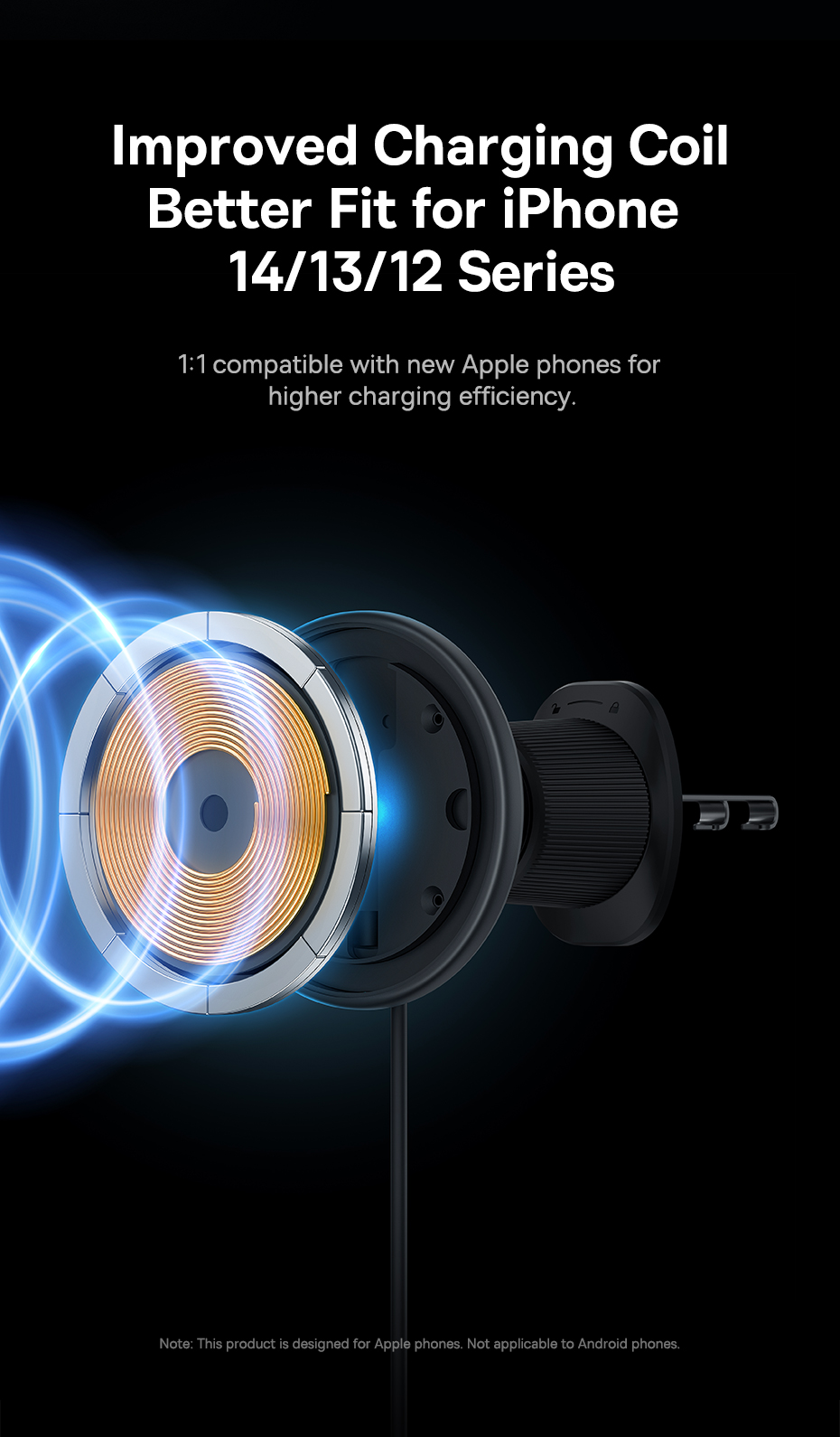 Đế sạc có thiết kế thông minh, cho phép điều chỉnh góc nhìn và vị trí của điện thoại để tùy chỉnh với tầm nhìn và vị trí thuận tiện khi lái xe. Bạn có thể xoay và nghiêng điện thoại để đáp ứng các nhu cầu sử dụng khác nhau.